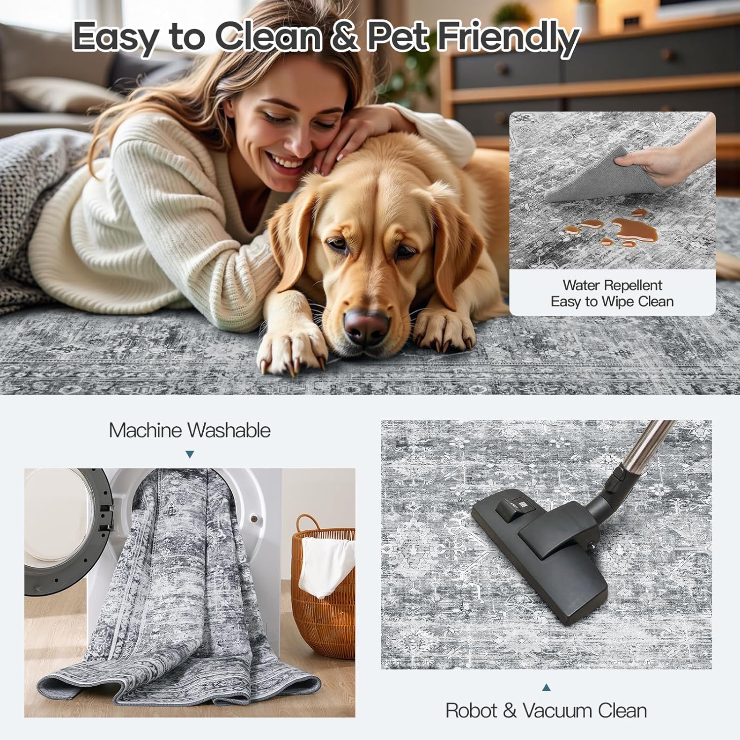 - Machine Washable Rug: This low-pile area rug resists pet hair and debris and is easy to clean—simply vacuum, sweep, or wipe between machine washes, saving you time and effort. Care Tips: Cold gentle cycle. Mild detergent only. Tumble dry low or air dry