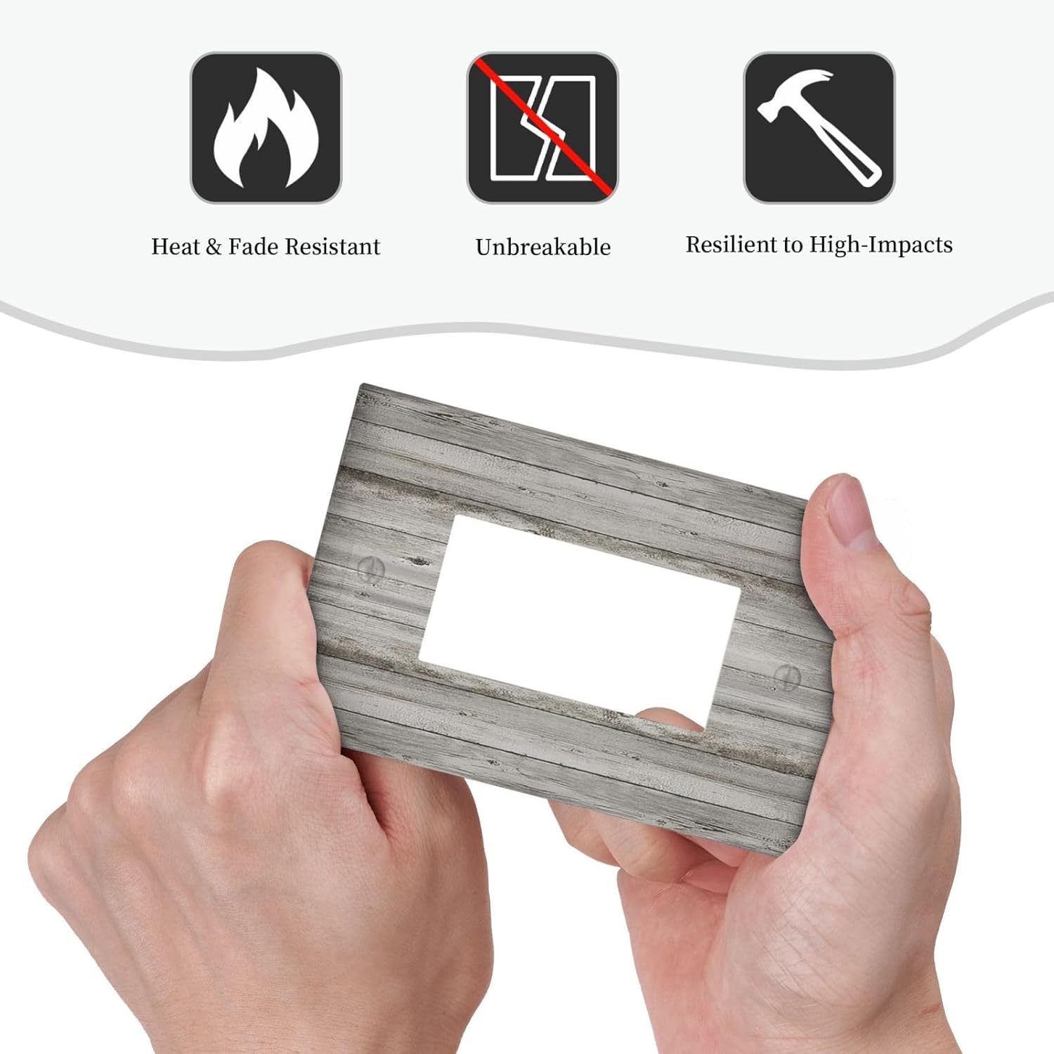 Decorative Outlet Covers Farmhouse Rustic Grey Barn Door Wood 1 Gang Single Rocker Light Switch Cover Plate Wall Plates GFCI Faceplate for Bedroom Cabin Decor