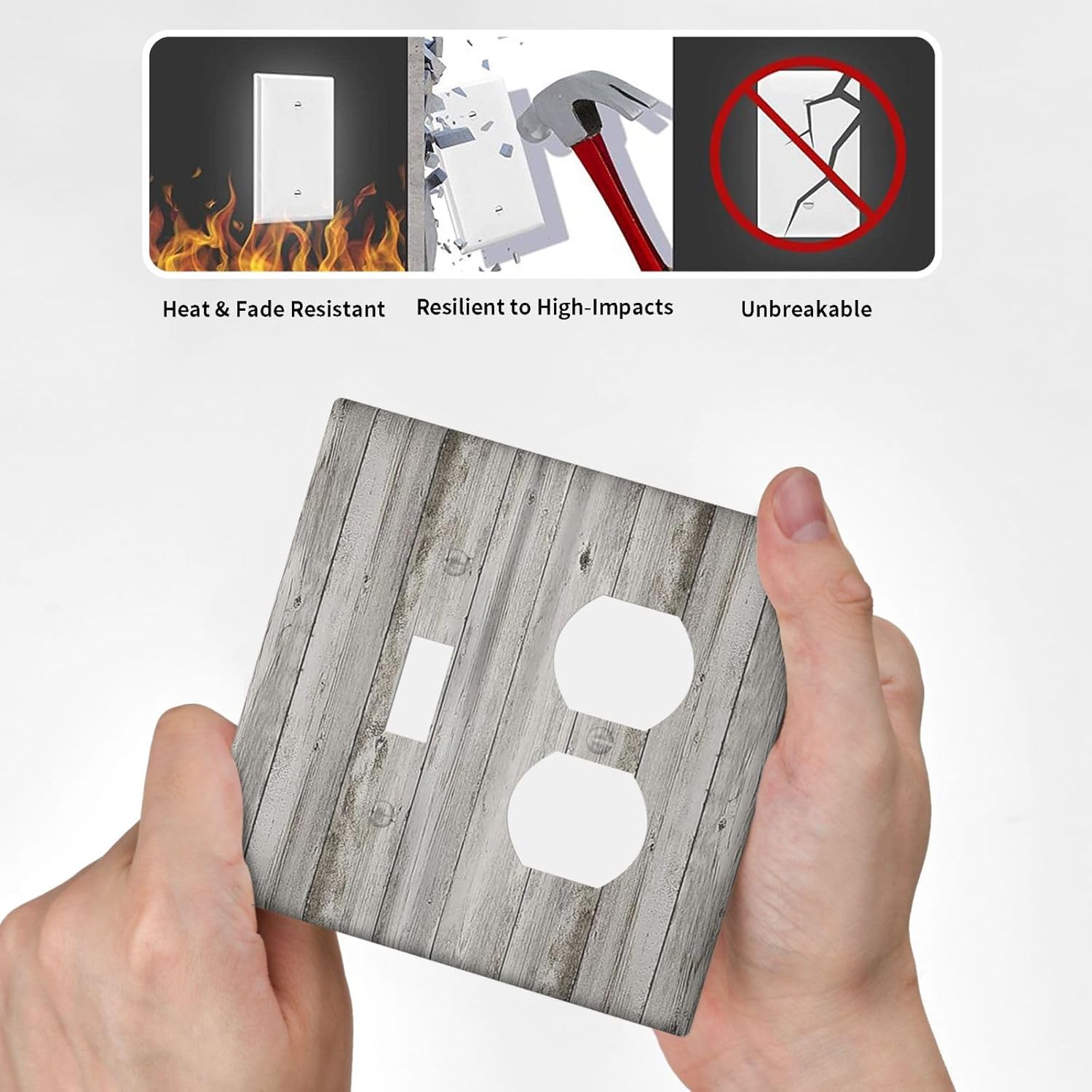 Wallplates Farmhouse Rustic Grey Barn Door Wood 1 Toggle 1 Duplex Switch Plate Electrical GFCI Faceplate Decorative Light Switch Covers for Bedroom Cabin Decor