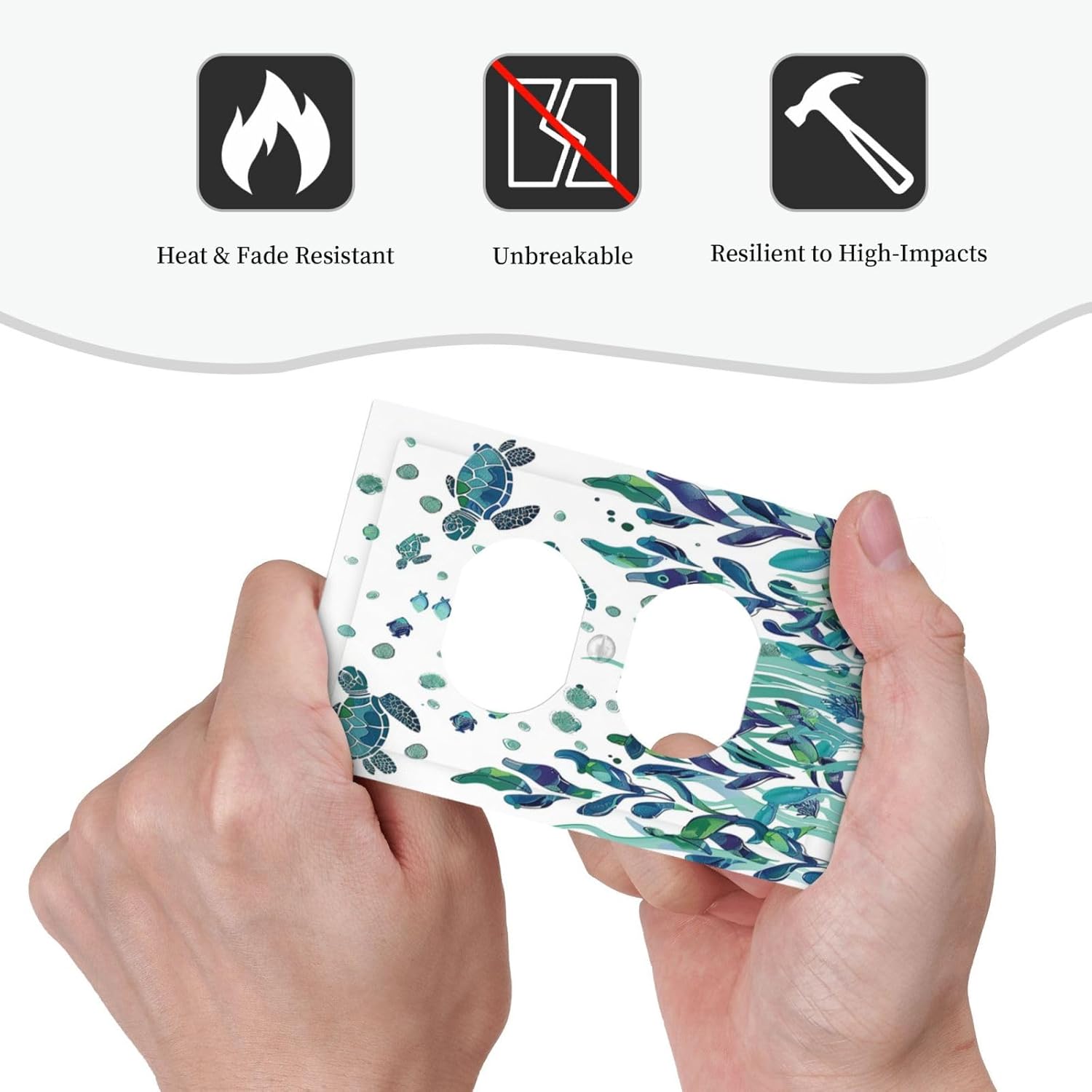 Outlet Covers Vibrant Turtle Seagrass Watercolor Painting 1 Gang Duplex Wall Plate Decorative Switch Plates Electrical Receptacle Faceplate Light Switch Cover for Bathroom living Room Decor