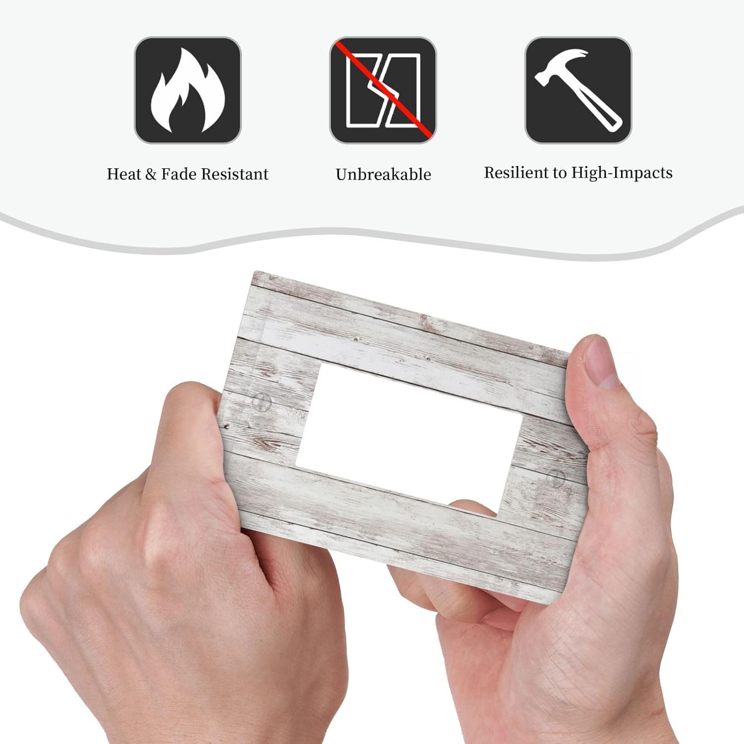 Decorative Outlet Covers Rustic Vintage White Wood Grain 1 Gang Single Rocker Light Switch Cover Plate Wall Plates GFCI Faceplate for Farmhouse Home Decor