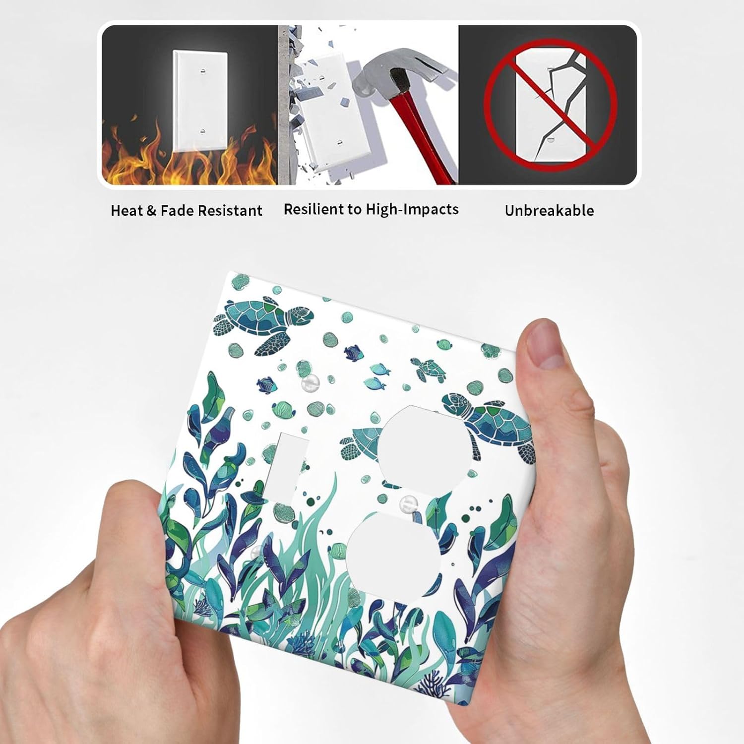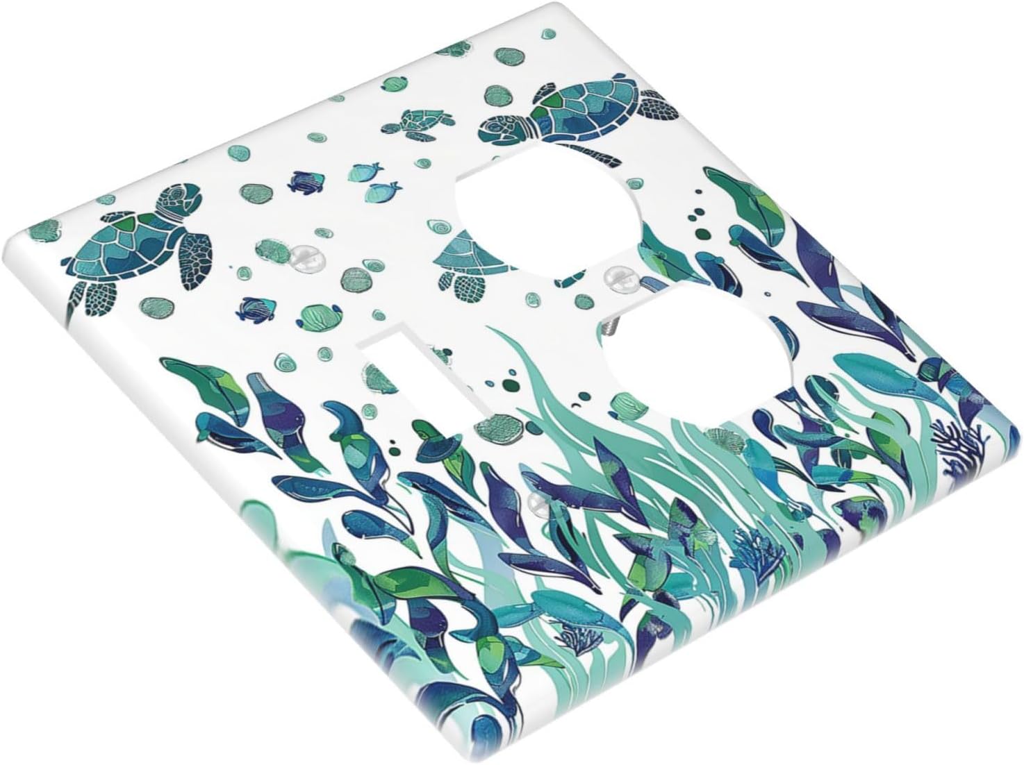 Wallplates Vibrant Turtle Seagrass Watercolor Painting 1 Toggle 1 Duplex Switch Plate Electrical GFCI Faceplate Decorative Light Switch Covers for Bathroom living Room Decor
