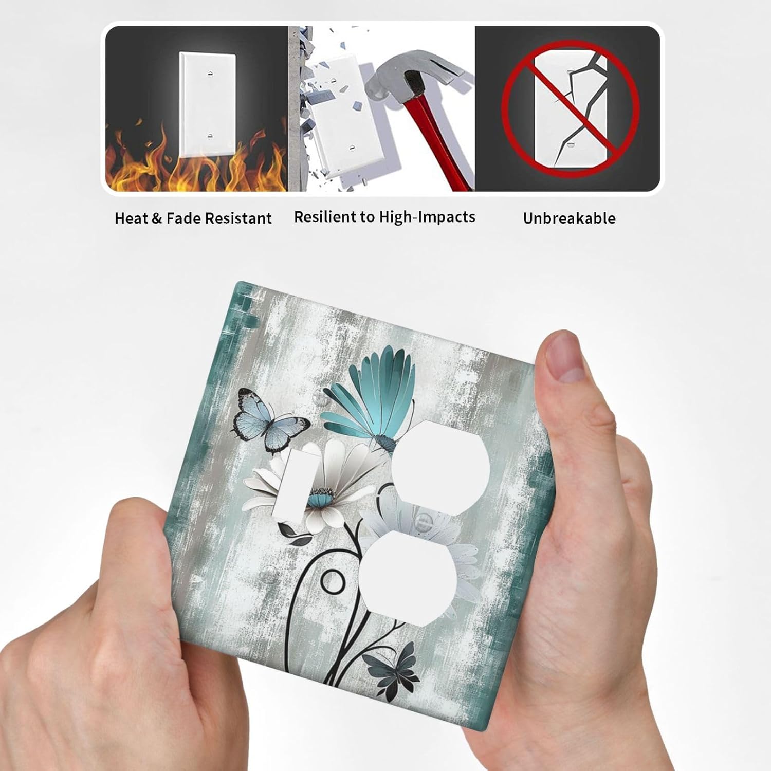 Wallplates Rustic Teal Daisy Floral Flowers Butterfly Wood Grain 1 Toggle 1 Duplex Switch Plate Electrical GFCI Faceplate Decorative Light Switch Covers for Bathroom Bedroom Decor