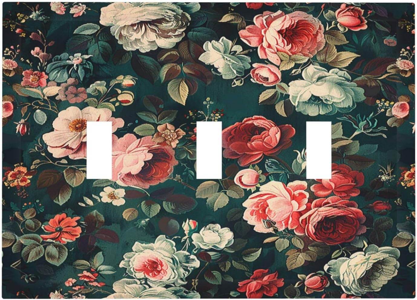 Decorative Switch Plates Baroque Vintage Peony Flower Floral 3 Gang Wall Plate Triple Toggle Light Switch Cover Faceplate Electrical Wall Panels for Bedroom Farmhouse Decor