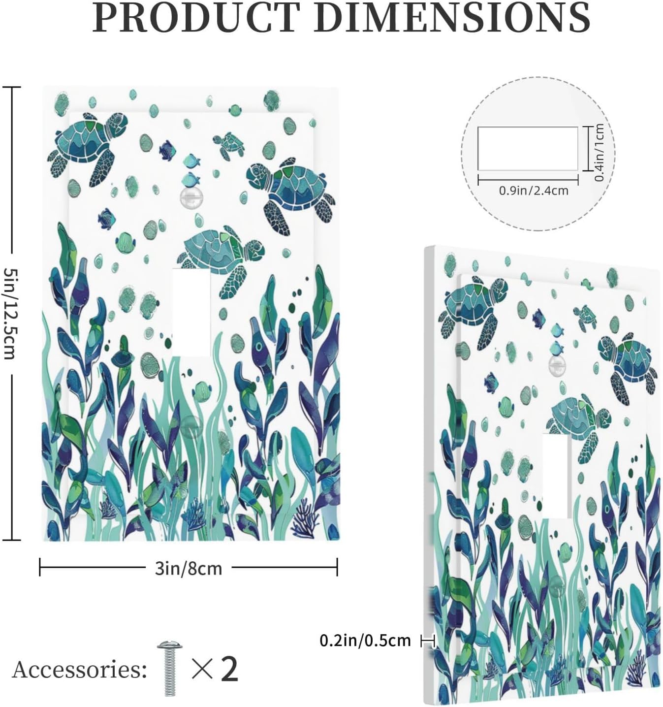 Decorative Light Switch Cover Vibrant Turtle Seagrass Watercolor Painting 1 Gang Single Toggle Device Electrical Faceplate Switchplates Decorator Outlet Wall Plate for Bathroom living Room