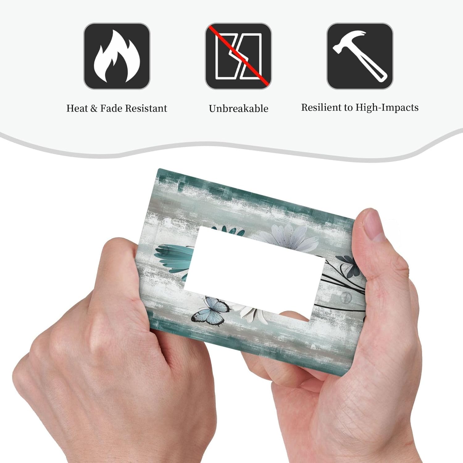 Decorative Outlet Covers Rustic Teal Daisy Floral Flowers Butterfly Wood Grain 1 Gang Single Rocker Light Switch Cover Plate Wall Plates GFCI Faceplate for Bathroom Bedroom Decor