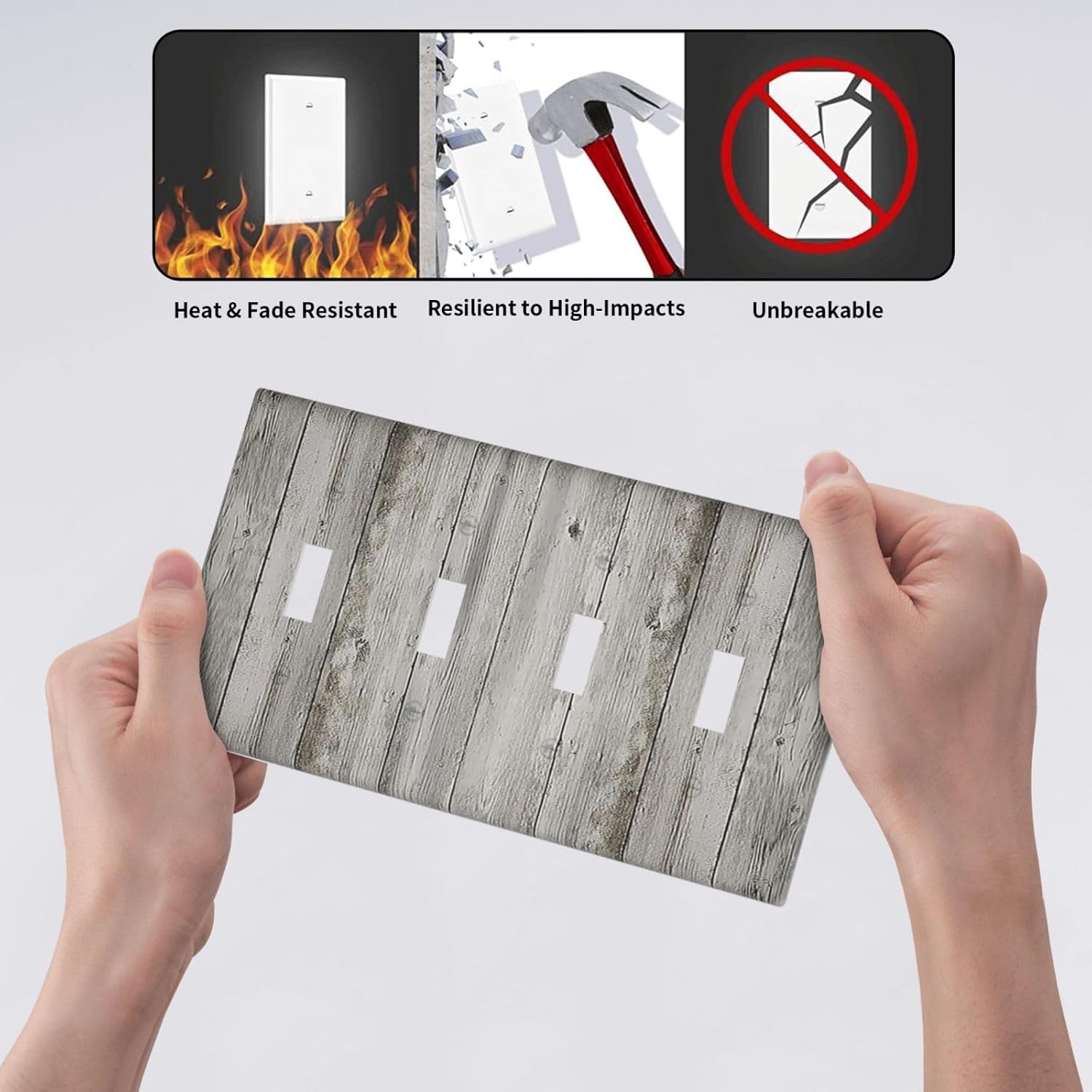Light Switch Covers Farmhouse Rustic Grey Barn Door Wood Quad Toggle Electrical Faceplate 4 Gang Wall Plate Decorative Switch Plates for Bedroom Cabin Decor