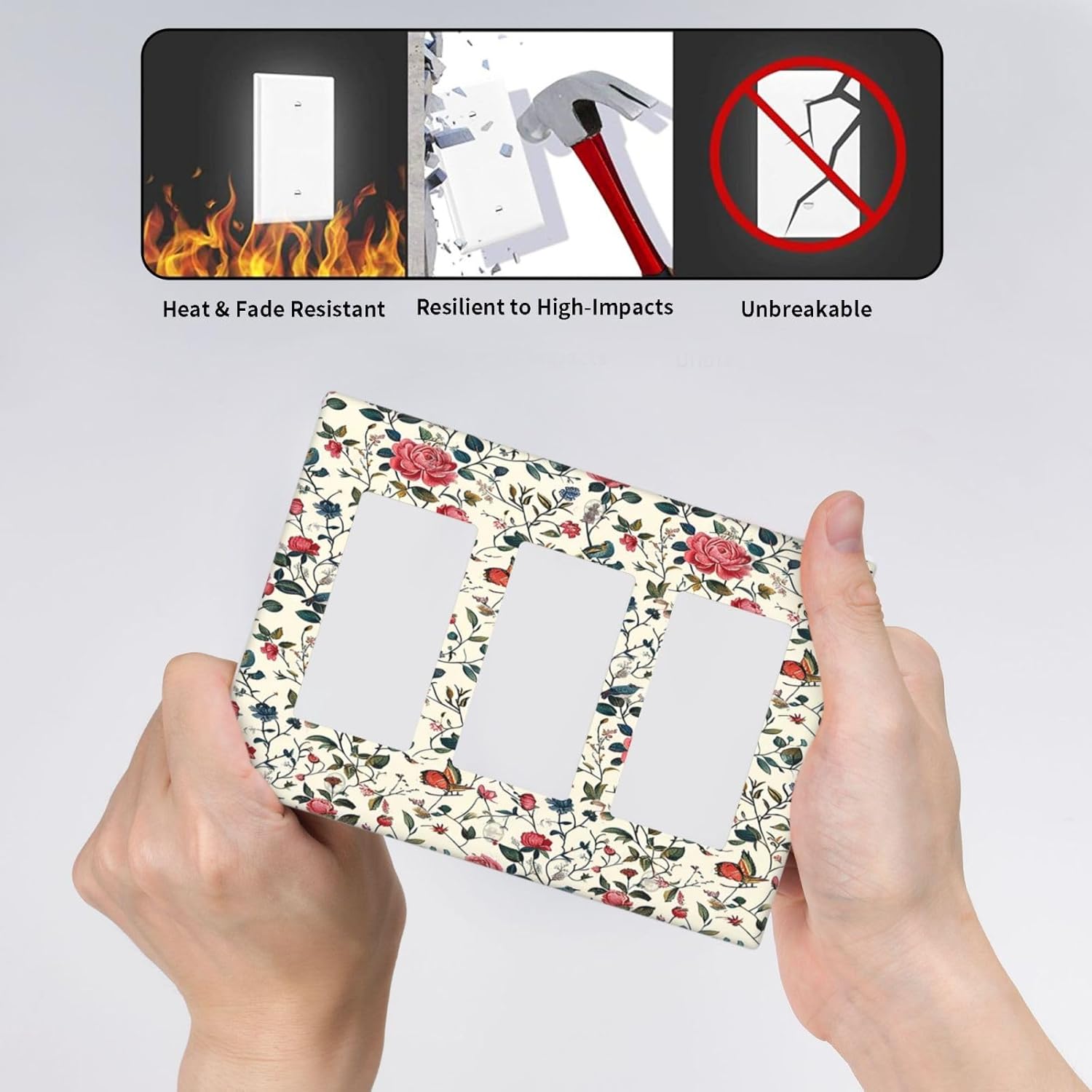 Light Switch Covers Vintage Flowers Rose Leaf Bird Butterfly 3 Gang Rocker Electrical GFCI Decorative Triple Outlet Wall Plate Cover Switchplate for Bedroom living Room Decor