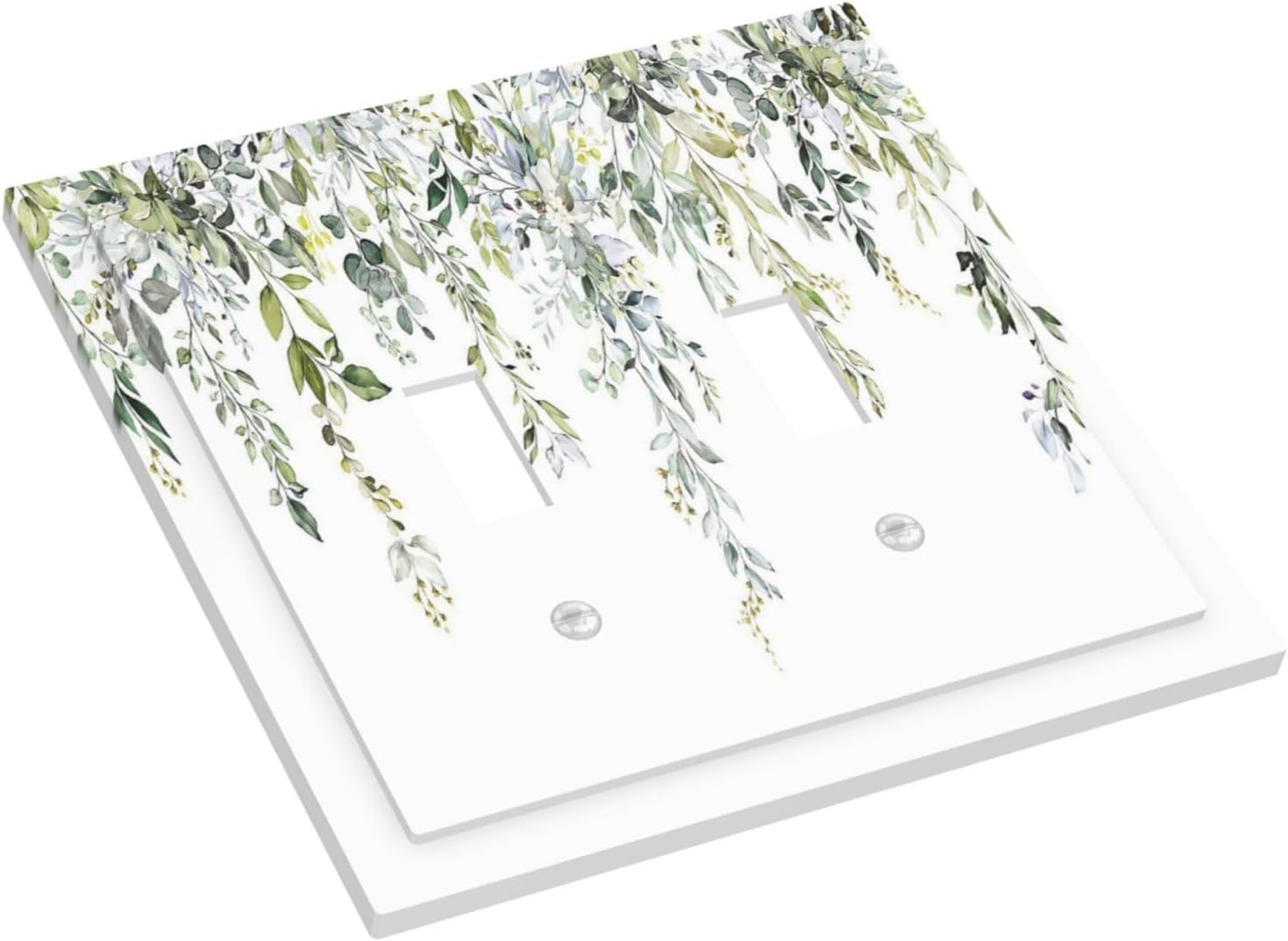 Decorative Switch Plates Boho Farmhouse Flower Leaf Sage Green 2 Gang Double Toggle Outlet Light Switch Cover Wall Plate Electrical Faceplate for Bedroom Cabin Decor