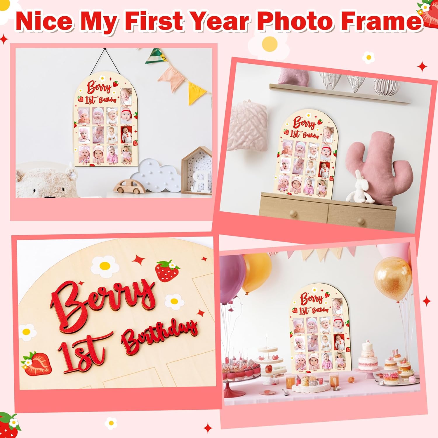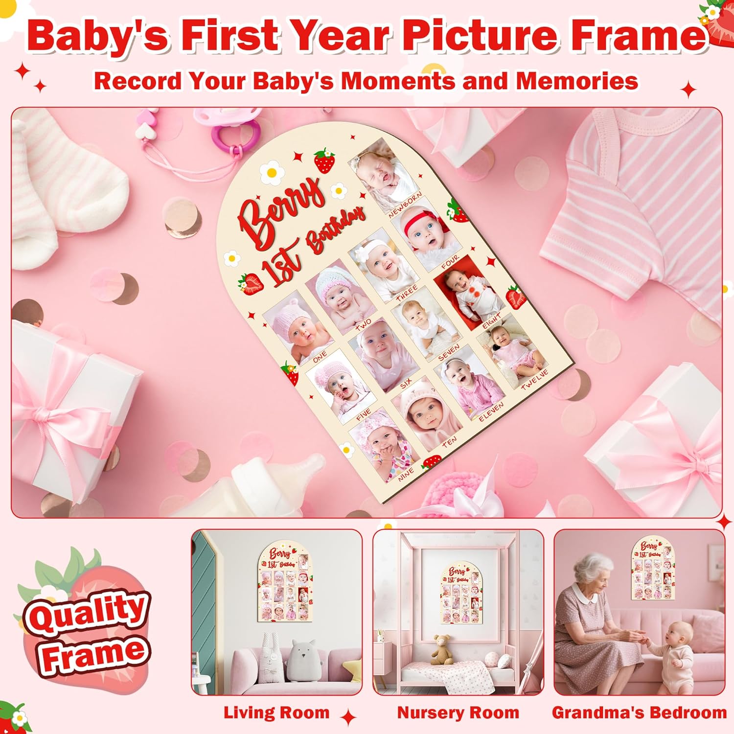 - 3D STRAWBERRY DESIGN: Document baby's precious first year with our adorable strawberry wooden photo display board! Made from premium thick wood for lasting durability. Perfect as a nursery decor or as the highlight of your baby's first birthday celebration, this cute milestone board turns fleeting moments into timeless memories you'll treasure forever.