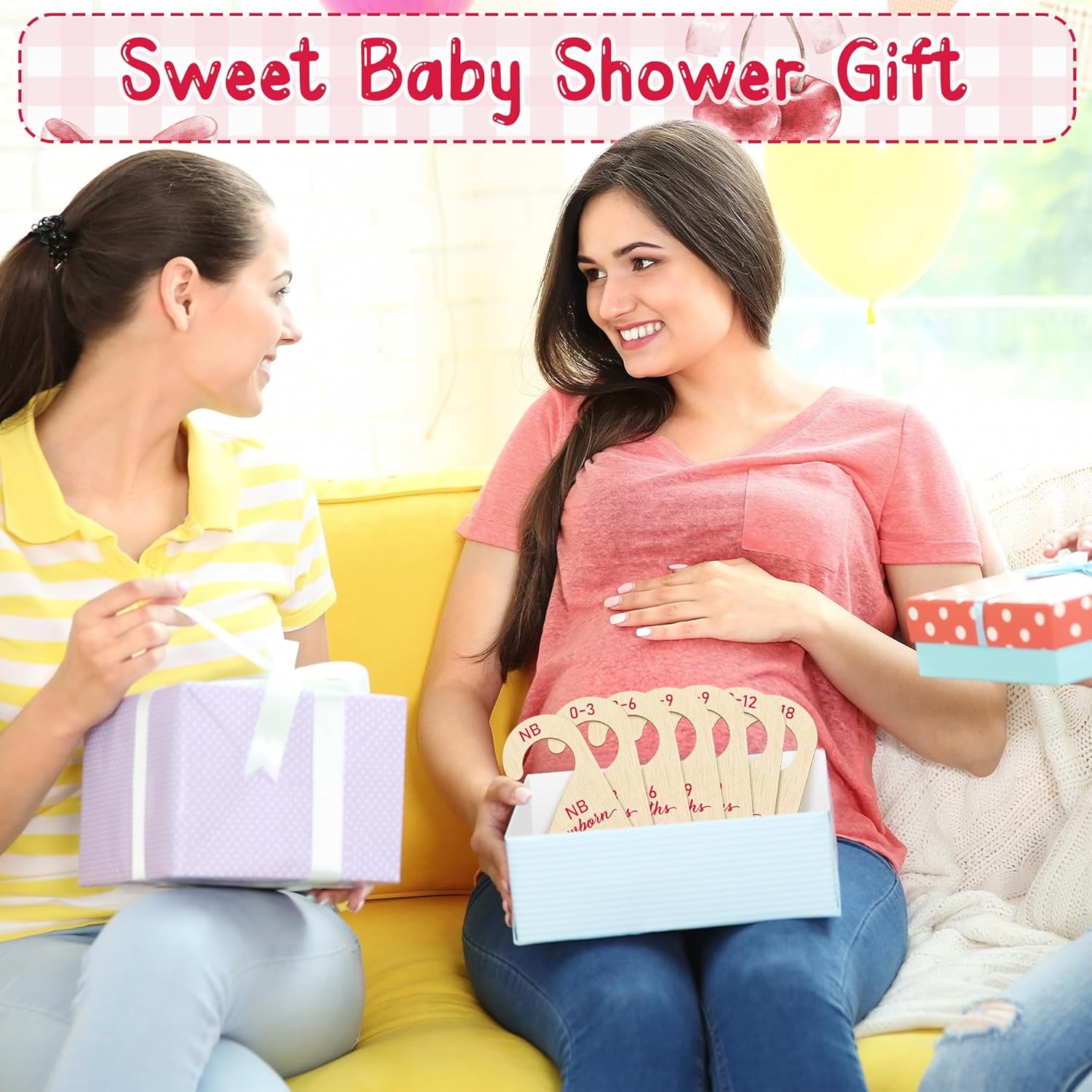 - Cherry Pink Bow Baby Closet Dividers: Package includes 7Pcs clothing dividers covering all ages from newborn to toddler, Newborn, 0-3 months, 3-6 months, 6-9 months, 9-12 months, 12-18 months, 18-24 months, and 1 black velvet bag. Great choice for organizing clothes for parents-to-be.