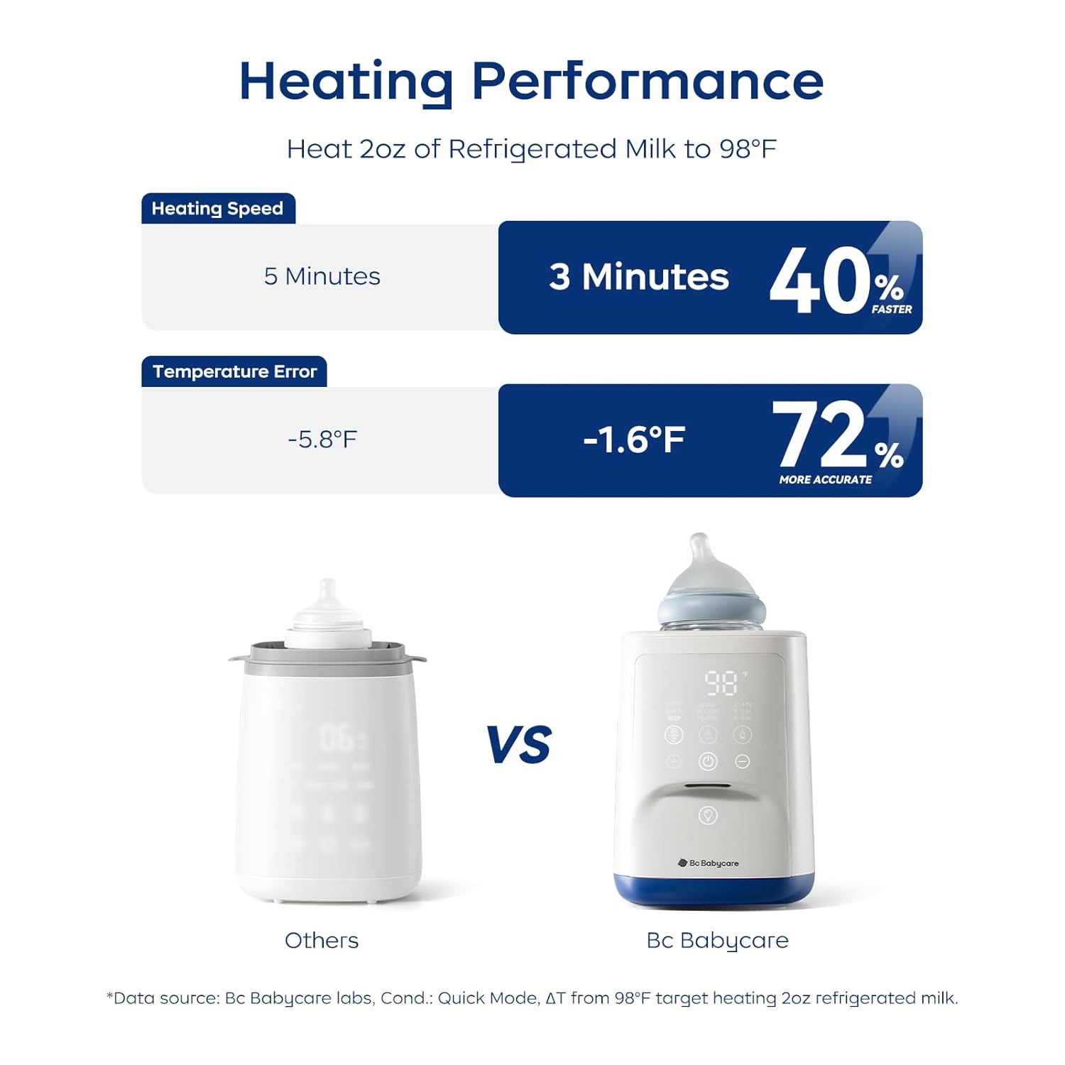 - 【All-in-One Heating】Use a water bath or steam to warm milk, formula, and baby food with precise control that fits most bottles