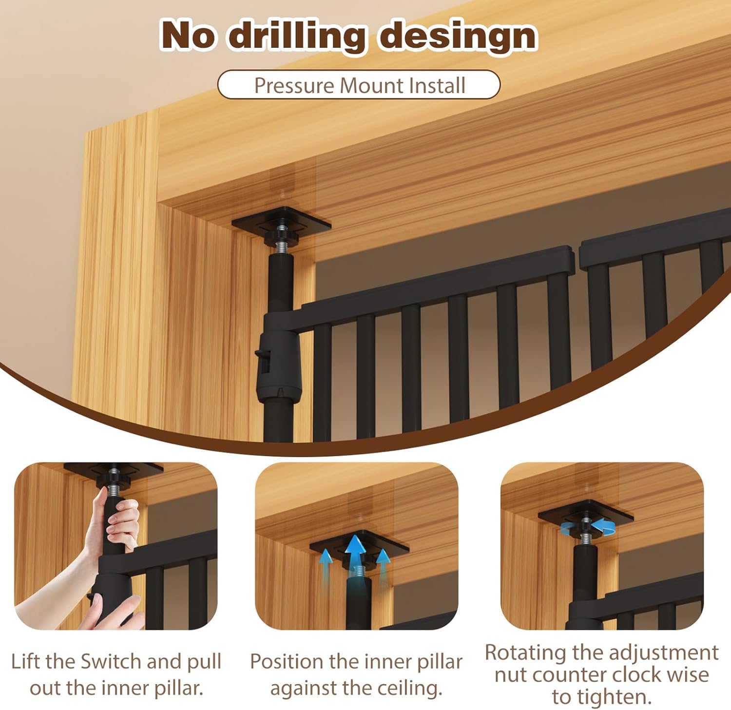 - Innovative Installation - No Tools : Our pet door is equipped with 2 extendable support rods, simply extend the support rods to mount—no drilling or wall damage! Replacing traditional wall pressure installation, it is very suitable for renters and homeowners who want a sturdy barrier without permanent marks.