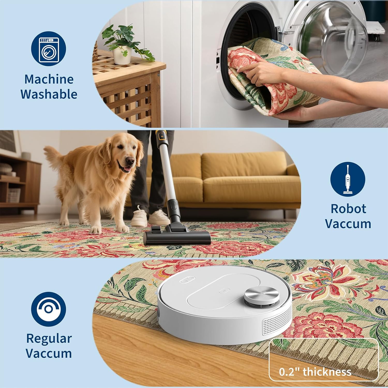 - 【floral Botanical Design】Inspired by floral fabrics, this botanical design features vivid, mirrored big floral motifs that attract the sweetest hummingbirds in a garden-like setting. Petals in bright yellow, lavender, pink, and red bloom beautifully against diffrent background. Water-resistant, stain-resistant, and machine-washable. Rug colors may vary slightly according to your device and the lighting in your space
