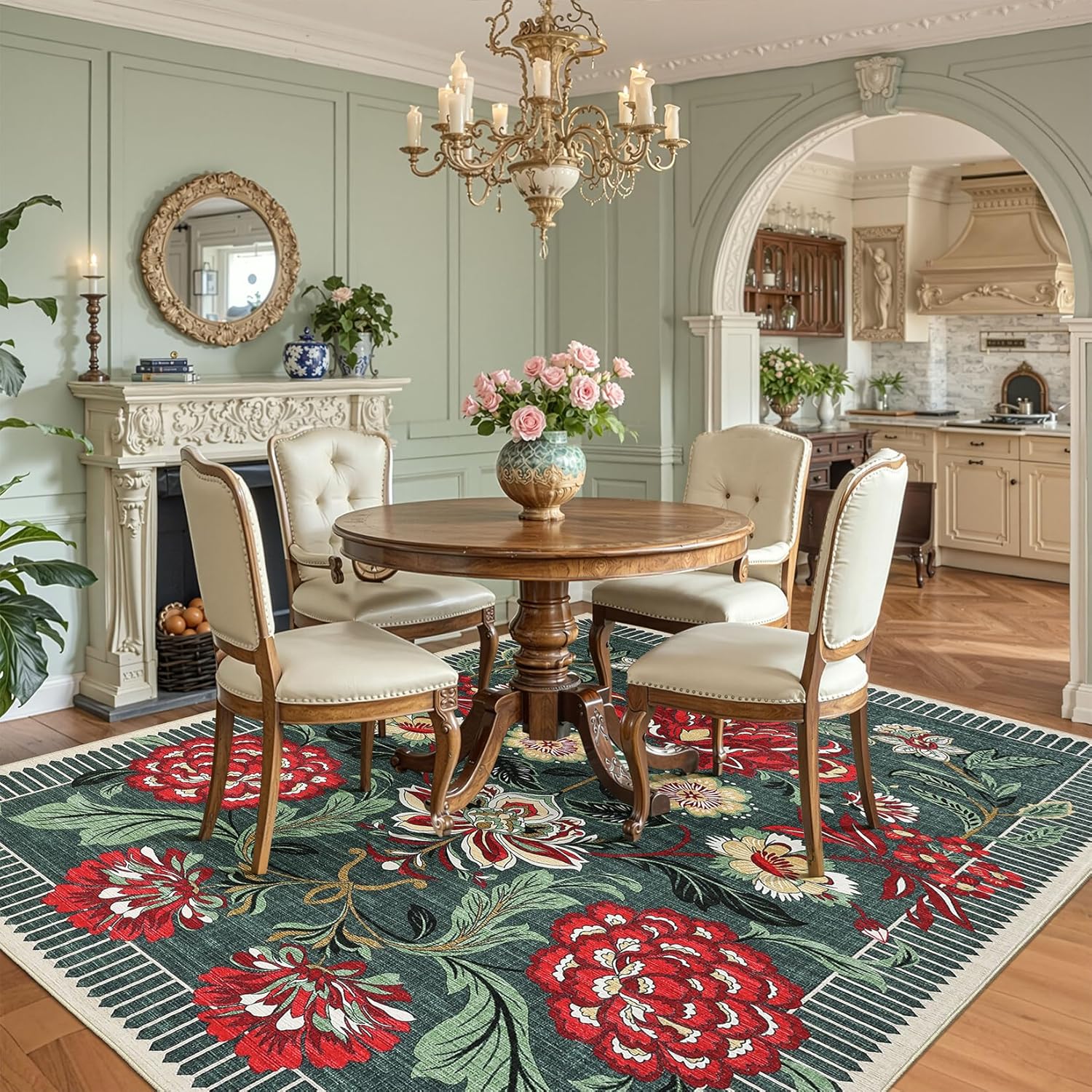 - 【floral Botanical Design】Inspired by floral fabrics, this botanical design features vivid, mirrored big floral motifs that attract the sweetest hummingbirds in a garden-like setting. Petals in bright yellow, lavender, pink, and red bloom beautifully against diffrent background. Water-resistant, stain-resistant, and machine-washable. Rug colors may vary slightly according to your device and the lighting in your space