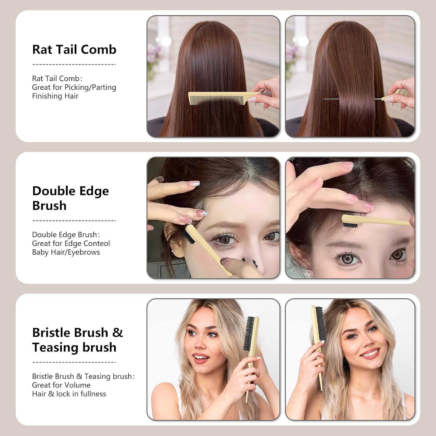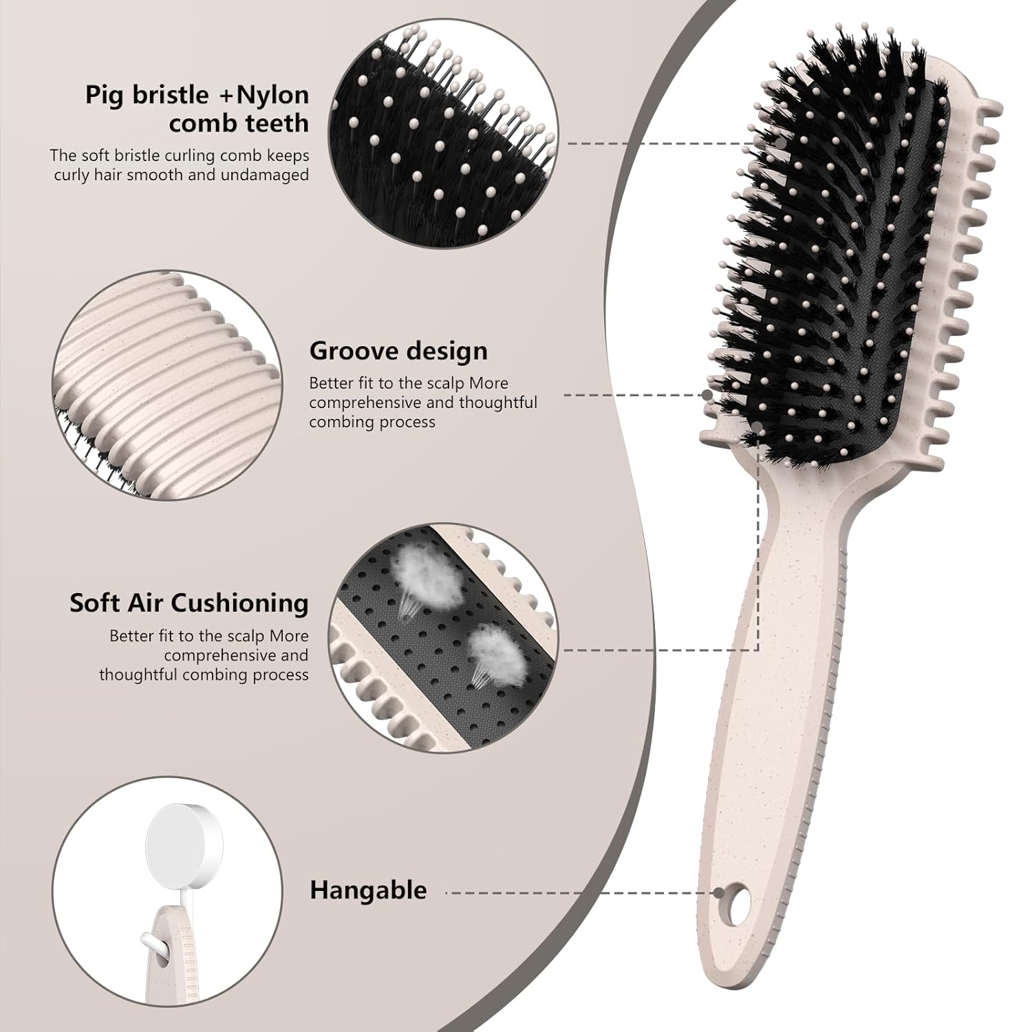 - Package Included: 4 PCS comb sets. Curl Defining Brush, Double edge brush, bristle brushand pin tail com.