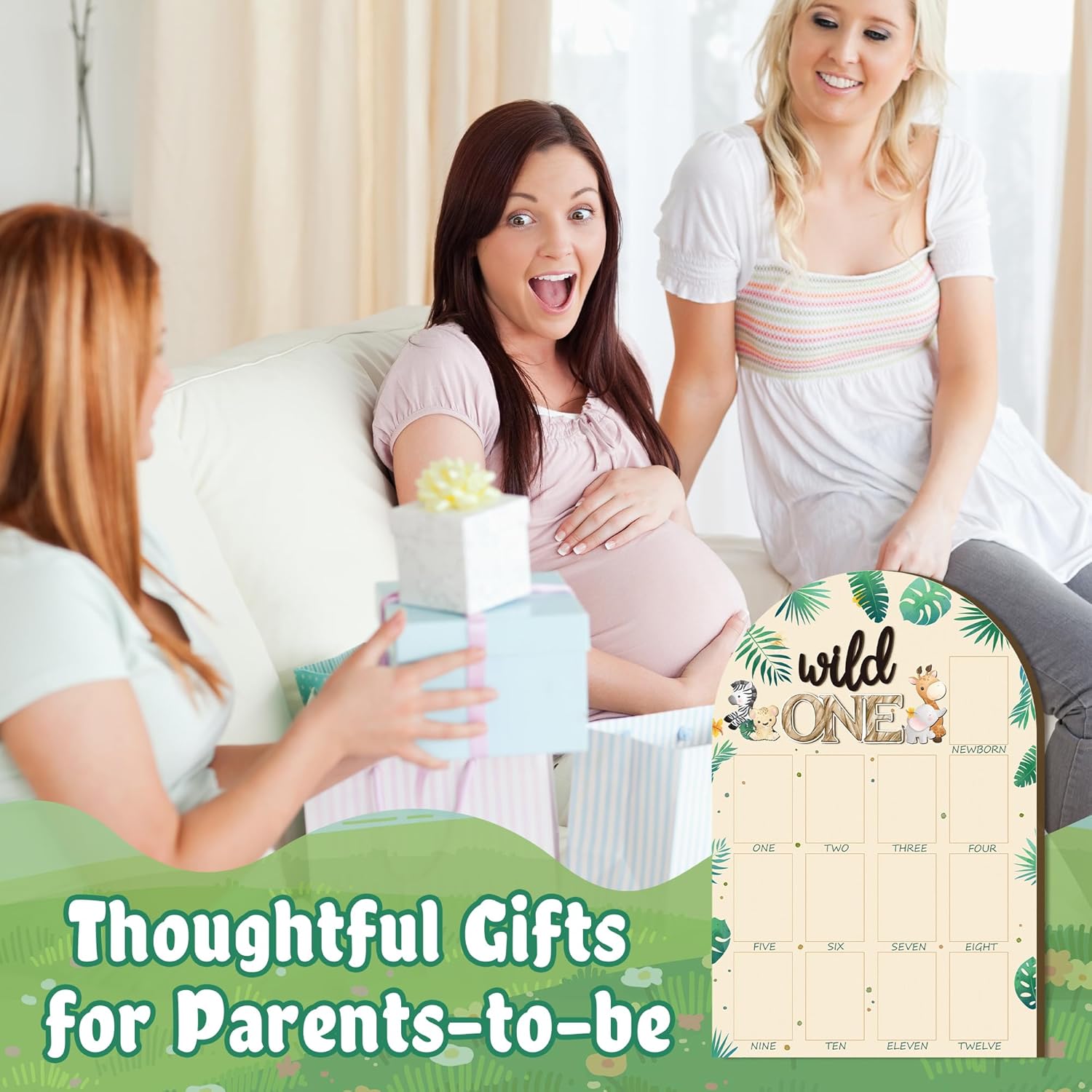 - My First Year Photo Frame: You will receive a first-year photo display board, approximately 16.5 x 11 inches in size, featuring 3 x 2 inches spaces designed for you to affix images of your baby from months one to twelve. This board effortlessly assists in chronicling your baby's development on a monthly basis.
