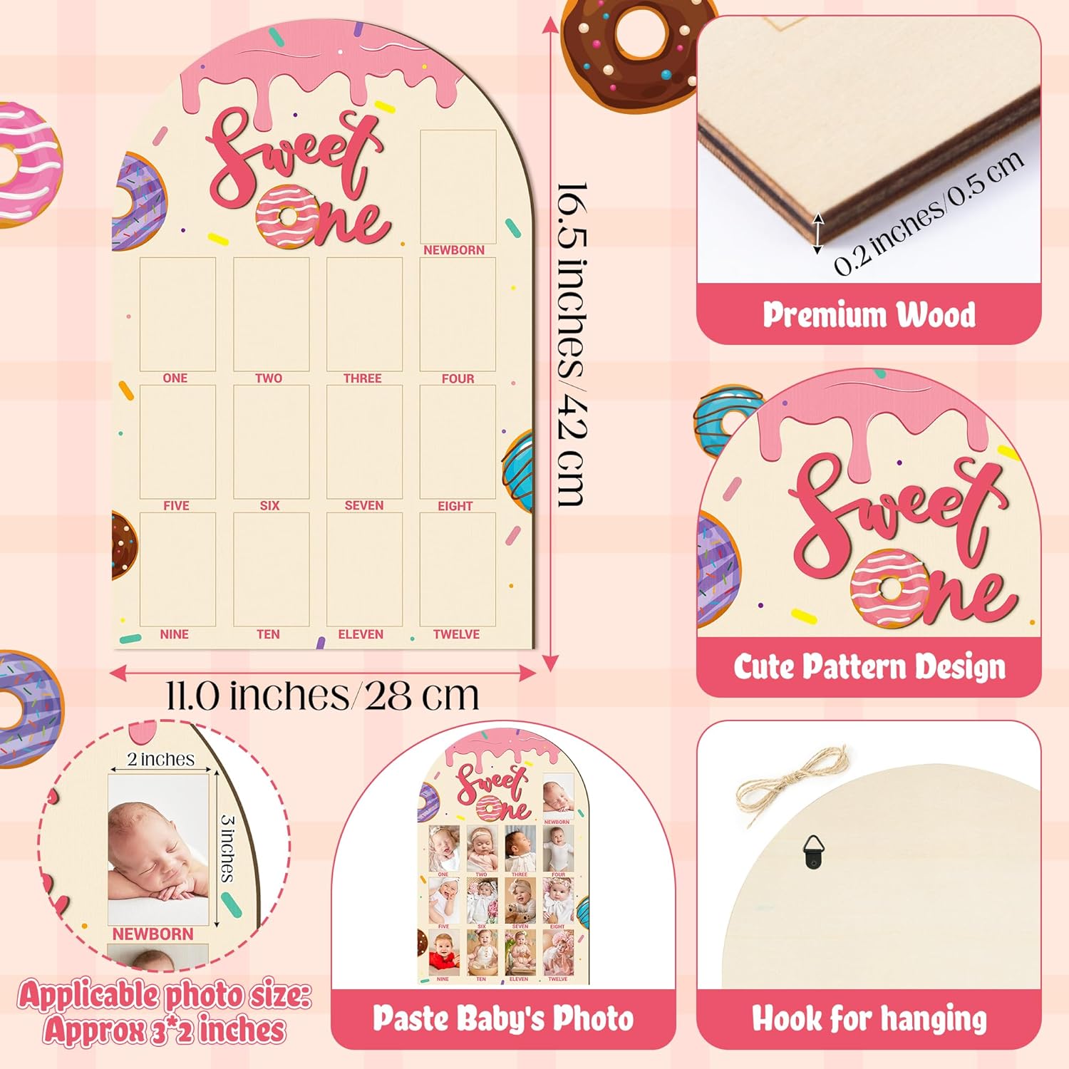 - Sweet Display Wood Board: Our 1st Birthday Frame comes with hanging hooks and adhesive points, making it easy for you to mount and decorate. Crafted from durable, premium wood, it's designed for longevity. Adorned with your baby's photo, this sweet-themed frame will undoubtedly become a stunning focal point at your child's first birthday celebration.