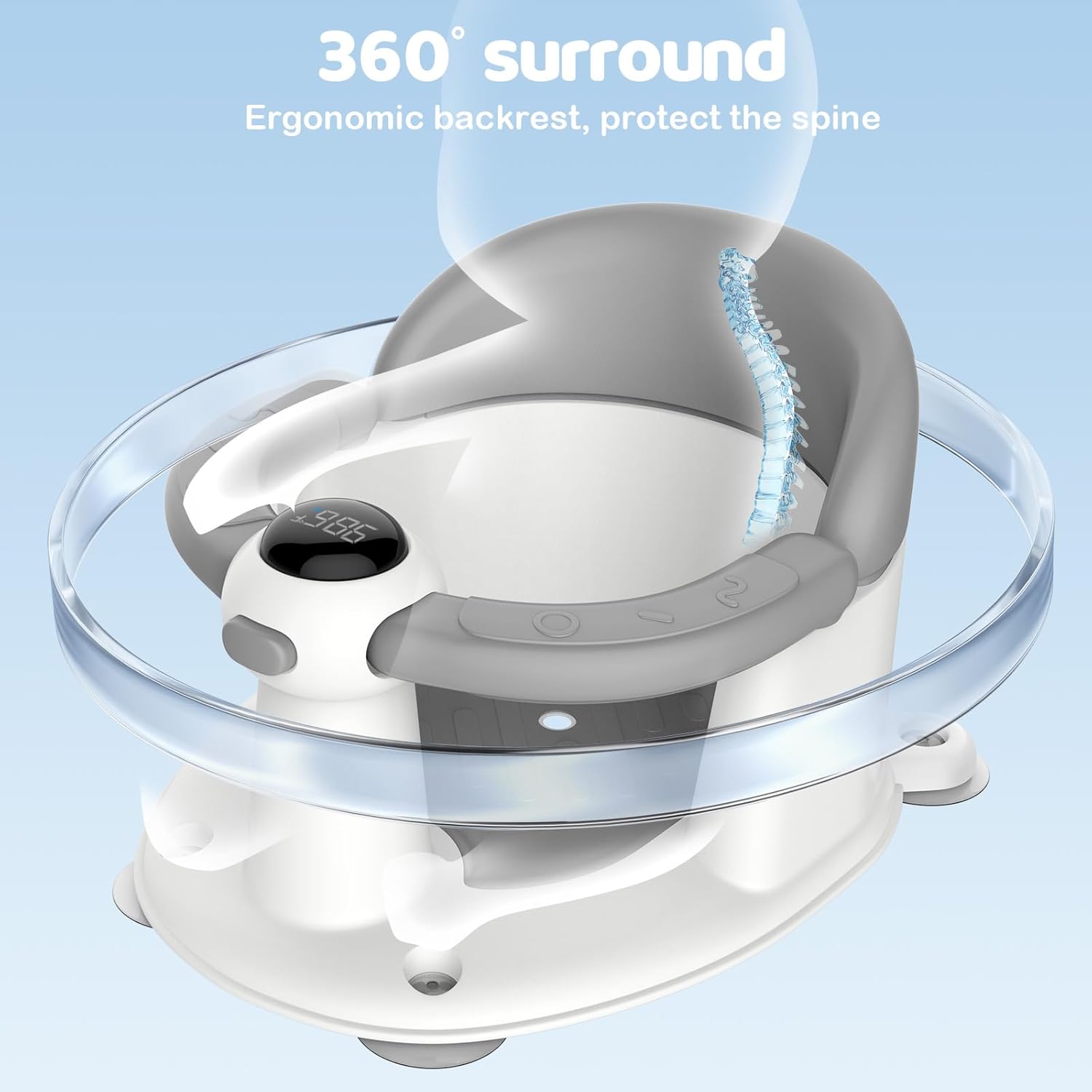 Baby Bath Seat-for Babies 6 Months & up, Water Temperature Display+Soft Cushion, Non-Slip Toddler Bath Seat for Baby, Sit Up Bath Seat for Baby, Grey