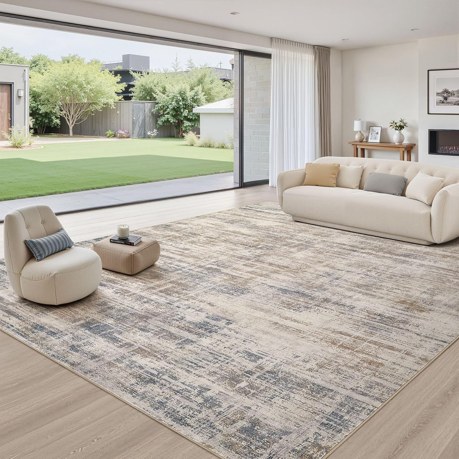 - Neutral Abstract Style: Elegant neutral design lets this rug integrate seamlessly into any space. It enhances room ambiance and adds refined elegance to your home. Perfect for living rooms, bedrooms, dining rooms, studies, offices, playrooms and nurseries
