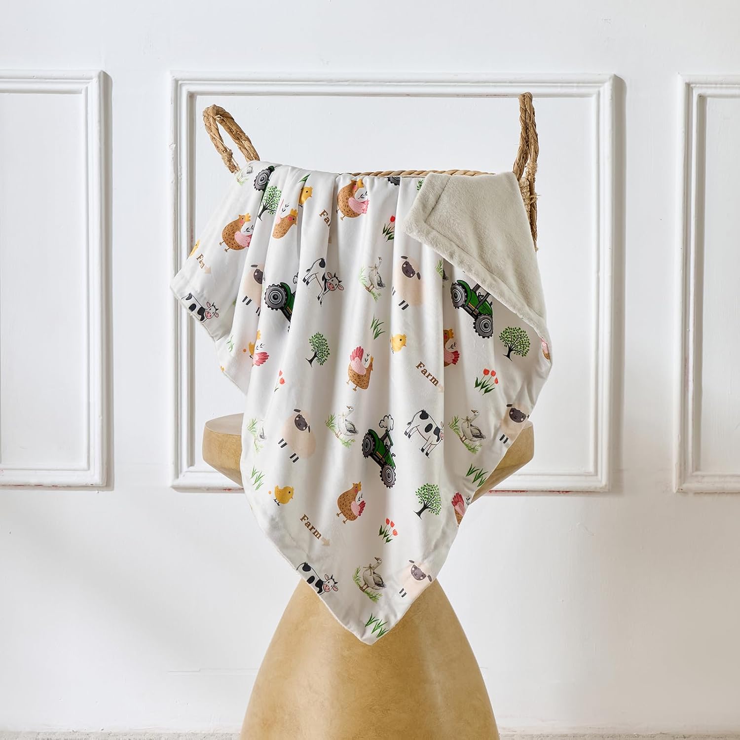Baby Blanket 30x40 Inches Soft Double Layer Fleece Throw with Great Farm Print Gender Neutral Crib Blanket for Infant, Toddler, Newborn Baby Girl or Boy Shower Gift