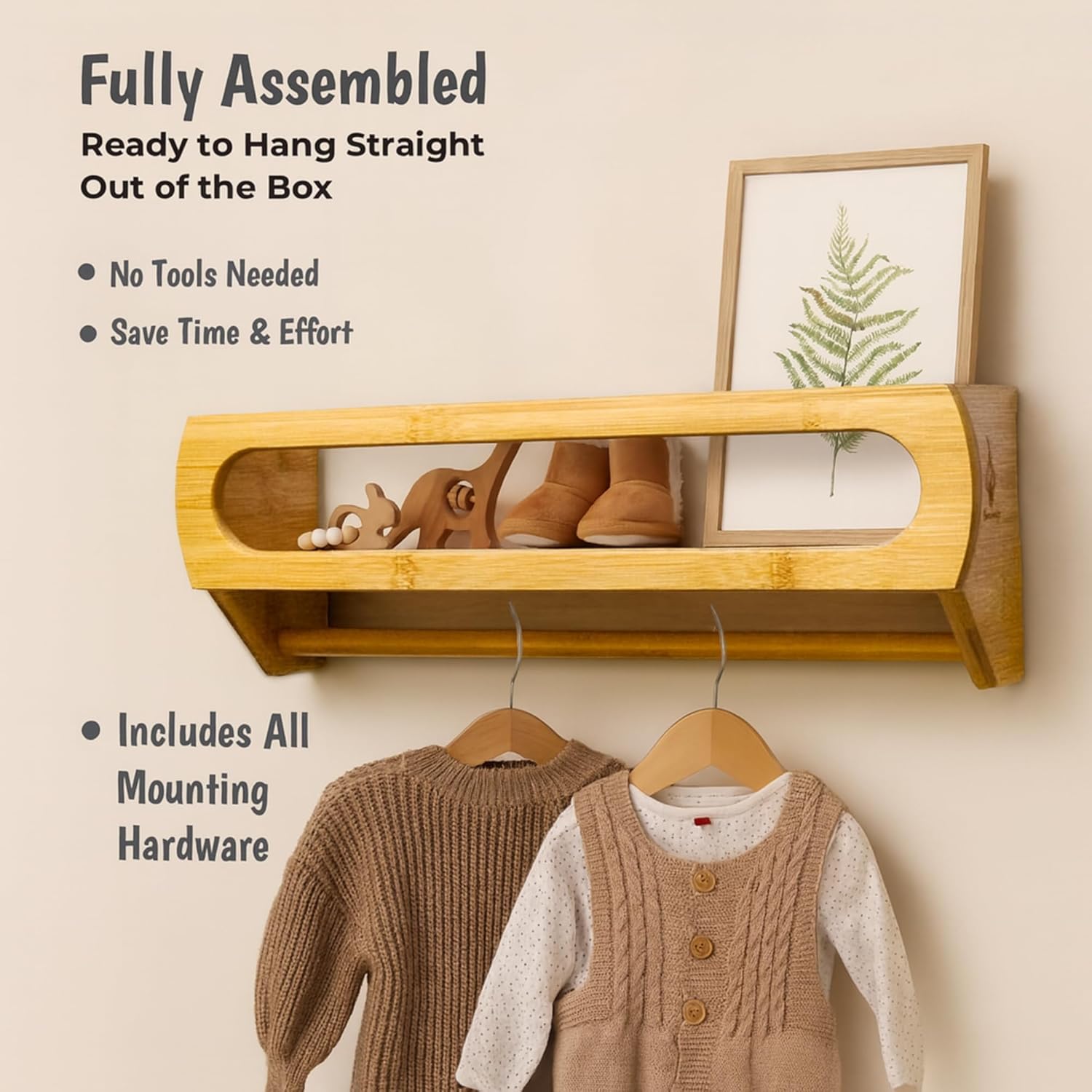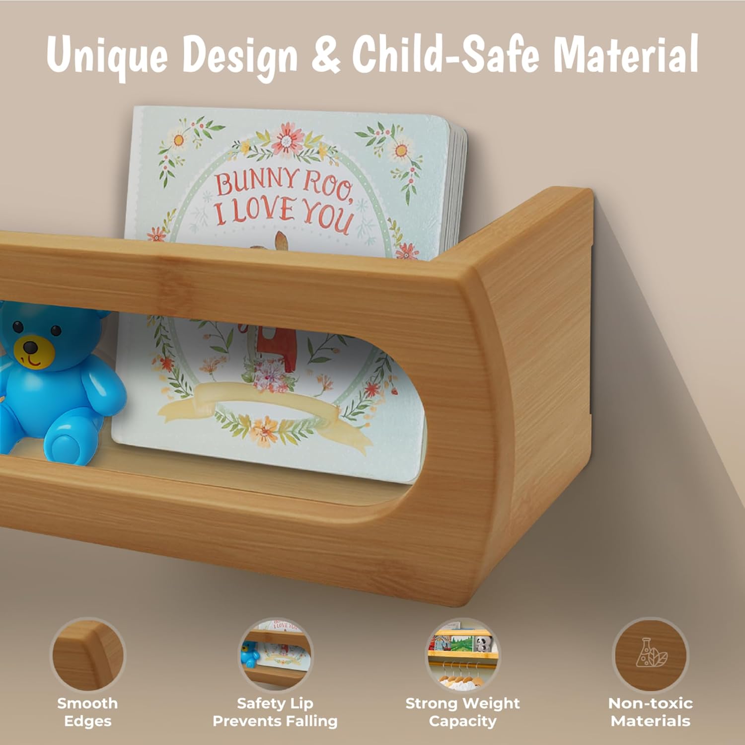 - [𝗣𝗿𝗲𝗺𝗶𝘂𝗺 𝗦𝗼𝗹𝗶𝗱 𝗕𝗮𝗺𝗯𝗼𝗼] Crafted from high-quality bamboo wood, these durable floating shelves offer strength, stability, and a clean, organic look for nursery or kids’ room storage.