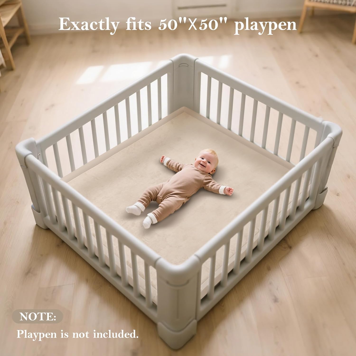 - SOFT TOUCH & CARING PROTECTION: Every exploration of the baby requires soft care. This baby play mat for floor is specially designed for the baby's delicate skin and play nature. The 1.3-inch thick memory foam filling gives the baby just the right support and a full sense of security. The surface is 100% coral fleece material, which does not shed or fall off. Our 50x50 playpen mat has a delicate, warm and skin-friendly touch, allowing the baby to fully immerse in a pleasant play time, and every moment is treated gently