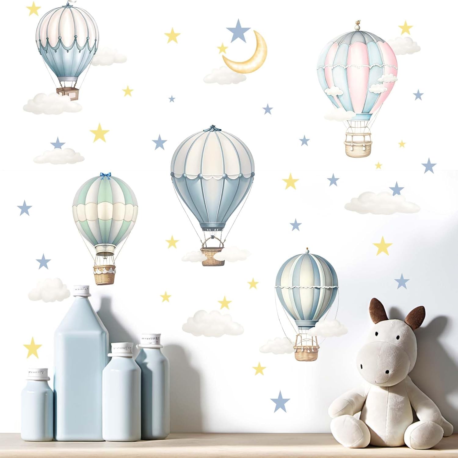 Balloon Wall Decals for Kids Room: Peel and Stick Hot Air Balloon Stars Cloud Wall Stickers - Baby Nursery Boys Room Girls Bedroom - Children Supplies Ages 1-12 Years Wall Decor Art
