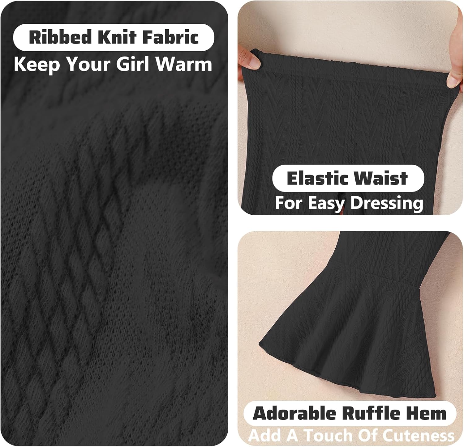2 Pack Toddler Baby Girl Pants Flare Leggings Ribbed Knit Newborn Bell Bottoms Solid Ruffle Infant Pants for Girls