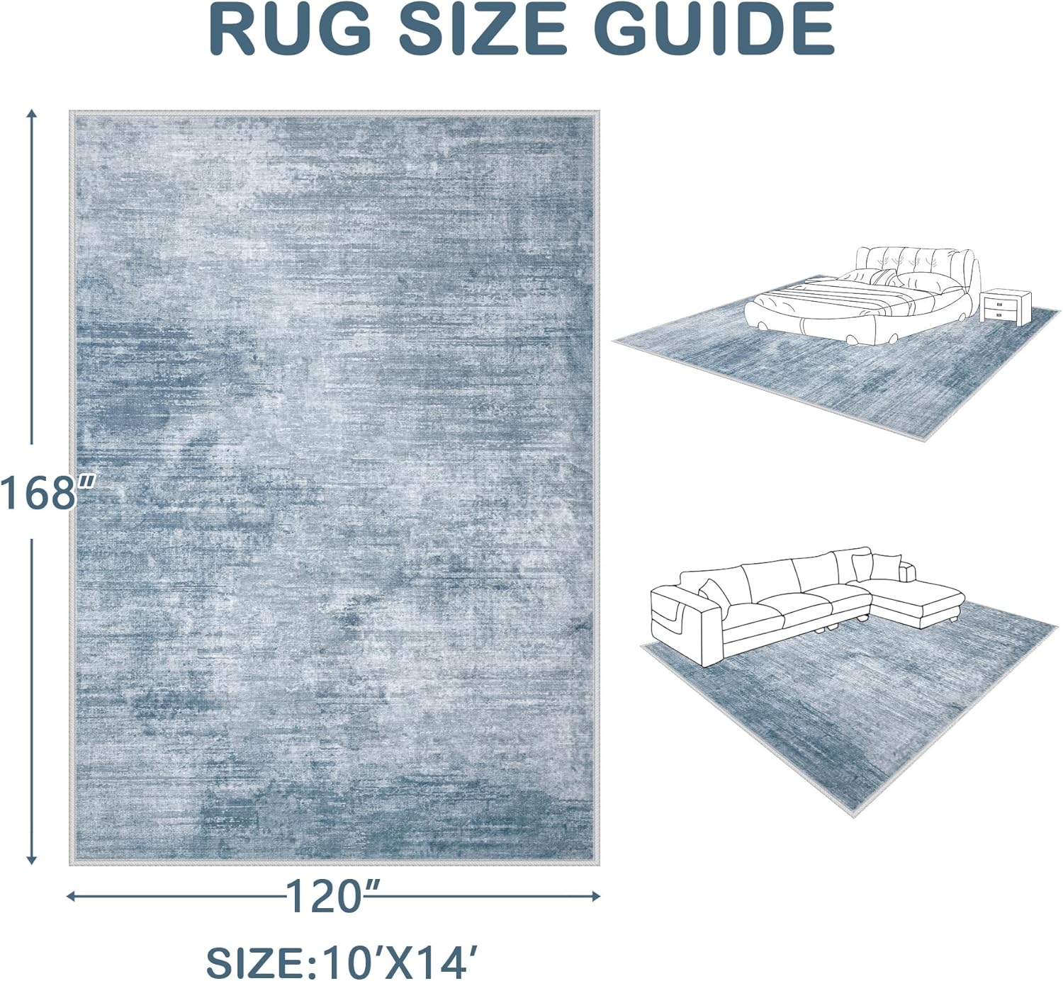 - Modern Abstract Rug: Simple color with soft stripe design, our living room rug has a modern look with a distressed feel; And 10x14 rug is perfect for living room, bedroom, dining room, kitchen, children's room, office, laundry room, dorm.