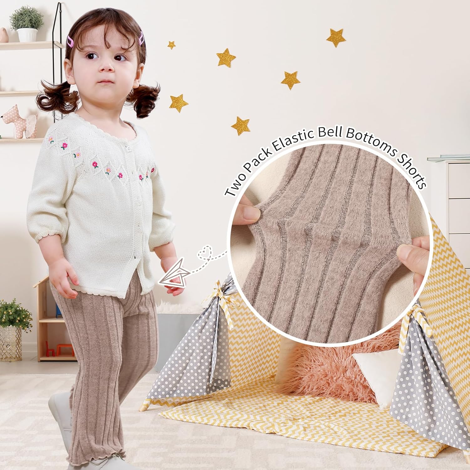 • Adorable Ribbed Leggings: Designed with cute flared pants and an elastic waistband, these baby girl leggings combine trendy style with all-day comfort. The flexible fit allows your girl to move freely during playtime, outings