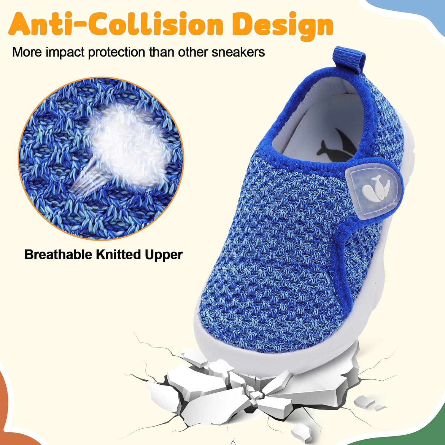 - Upper:Knitted Mesh Upper offers comfort and air permeability,has excellent breathability,moisture wicking function,and keep baby's feet dry and odorless.Super Soft,Breathable and Comfortable fit all the year