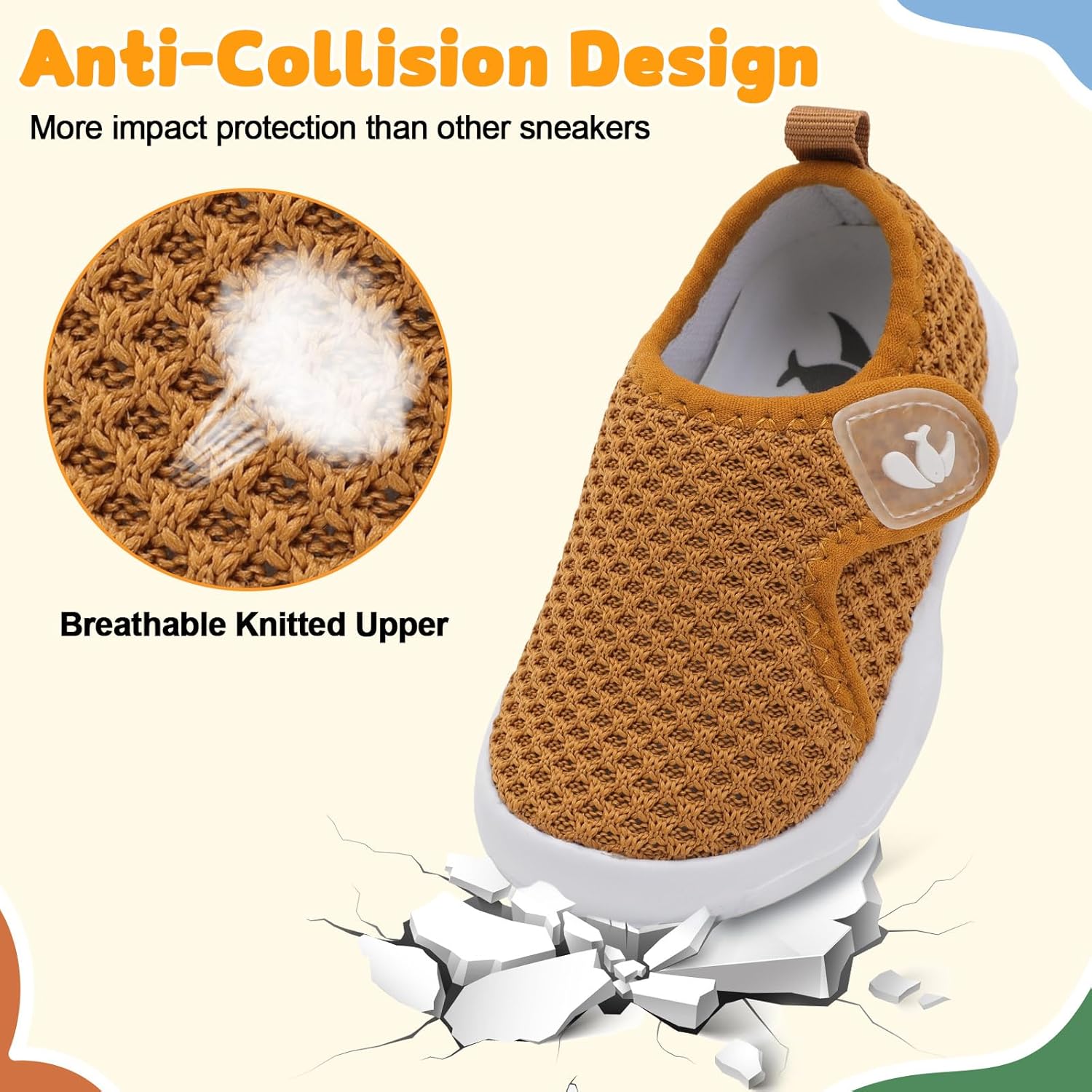 - Upper:Knitted Mesh Upper offers comfort and air permeability,has excellent breathability,moisture wicking function,and keep baby's feet dry and odorless.Super Soft,Breathable and Comfortable fit all the year