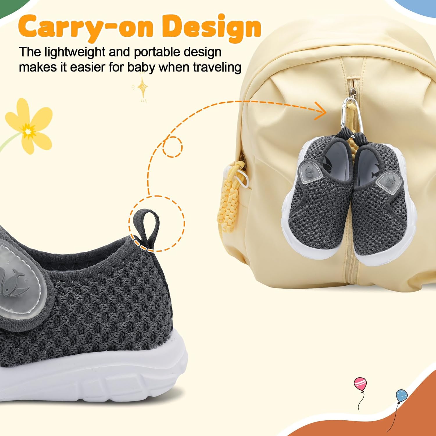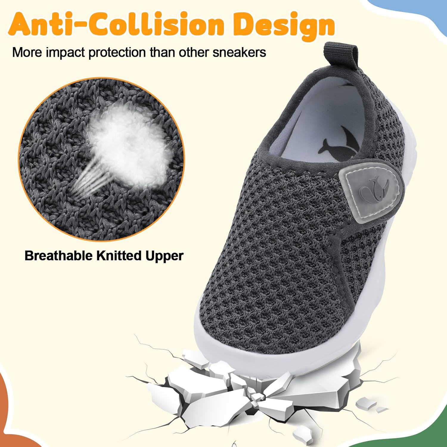 - Upper:Knitted Mesh Upper offers comfort and air permeability,has excellent breathability,moisture wicking function,and keep baby's feet dry and odorless.Super Soft,Breathable and Comfortable fit all the year