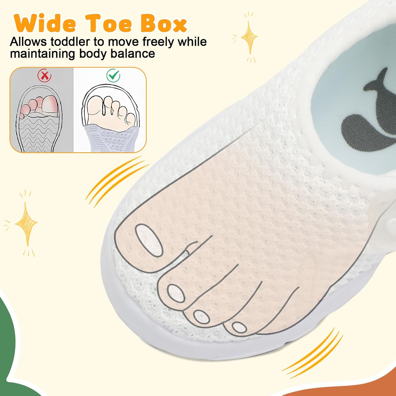 - Upper:Knitted Mesh Upper offers comfort and air permeability,has excellent breathability,moisture wicking function,and keep baby's feet dry and odorless.Super Soft,Breathable and Comfortable fit all the year