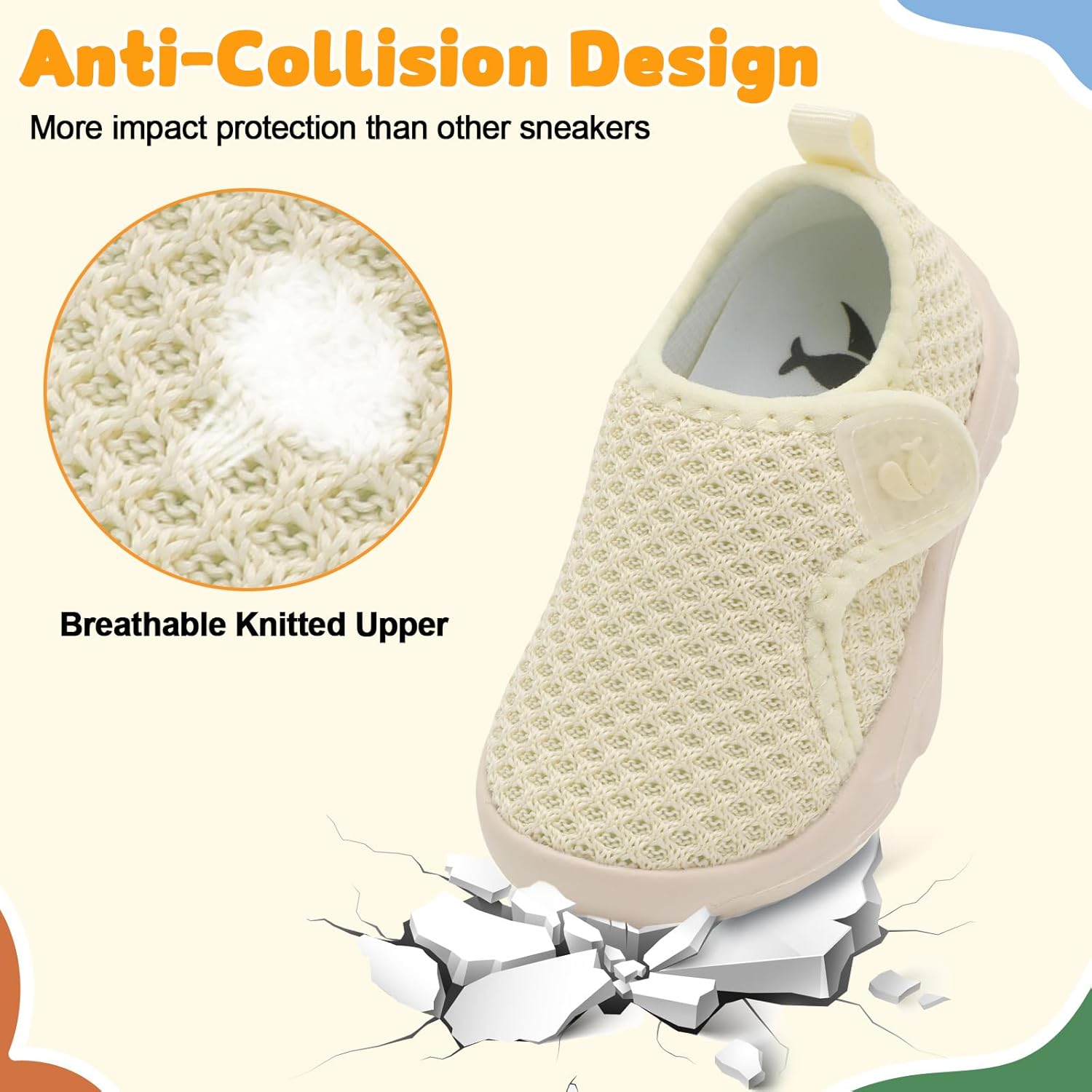 • Upper:Knitted Mesh Upper offers comfort and air permeability,has excellent breathability,moisture wicking function,and keep baby's feet dry and odorless.Super Soft,Breathable and Comfortable fit all the year