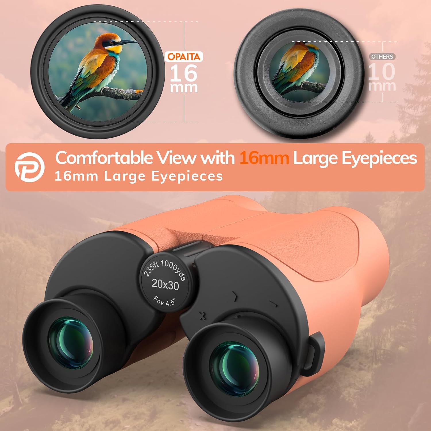 Compact Binoculars for Adults High Powered - OPAITA 20x32 Small Binoculars for Adults Kids with Low Light Vision for Hunting Cruise Ship Travel Concert Hiking Orange