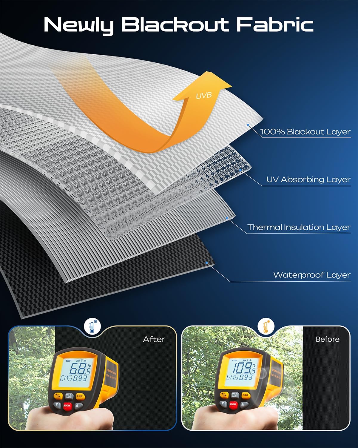 - Dual-Function Thermal & Noise Control - The dual-layer design features a silver reflective layer that repels 90%+ solar heat (providing 5–8℃ summer cooling) and a black core that reduces winter heat loss by 30%. With 10–15dB noise dampening, it creates a quieter, climate-controlled space for urban living, nurseries, and bedrooms