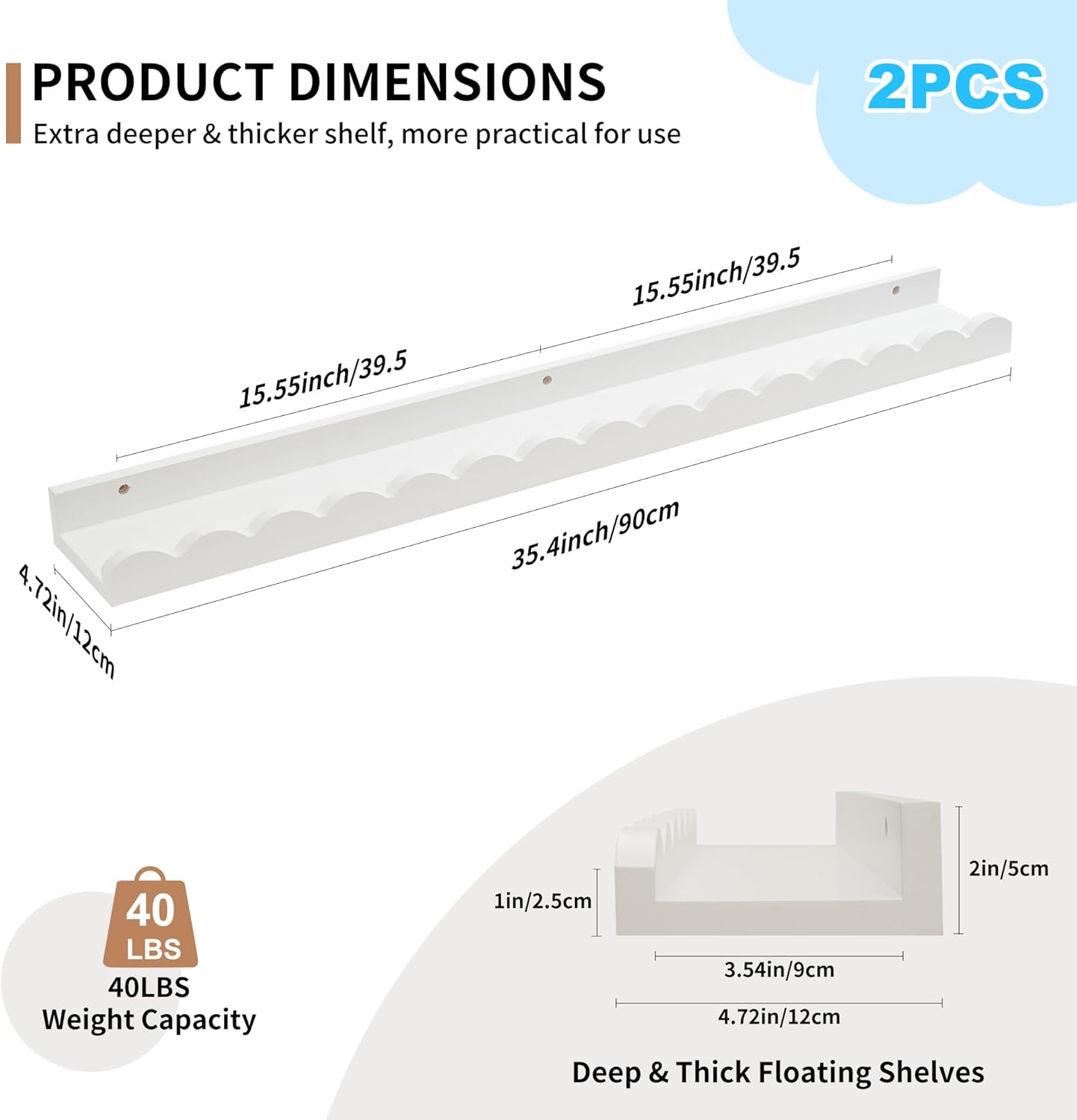 - 【🏡Stylish Scalloped Design】 This scalloped floating shelves has a scalloped rounded front with smooth rounded corners and a minimalist design that is child friendly to use while adding a touch of sophistication to any room. Perfect for organizing bookshelf, toys and school materials, this nursery book shelves can also be used as children's room décor to add a cute and fun element to their room