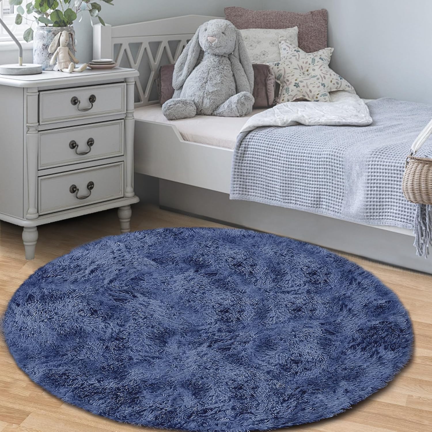 4FT Round Rug for Bedroom: Fluffy Shag Soft Washable Rugs Circle Small Fuzzy Plush Indoor Carpet for Living Room Nursery Playroom Dorm Kids Girls Boys Room (Navy Blue, 4'x4')
