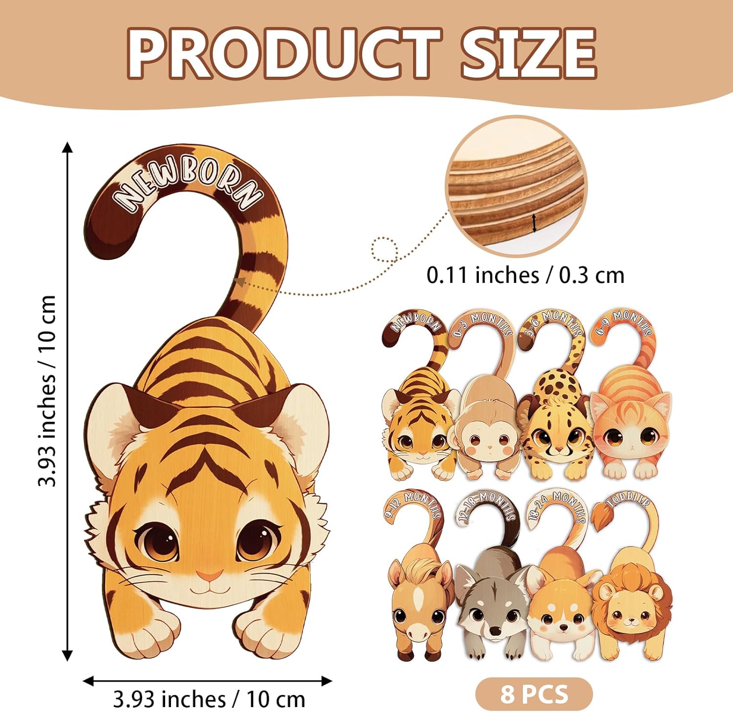- 【What's Included】 This set of wooden baby closet organizers includes 8 sturdy dividers, each featuring a different cute animal illustration. They cover essential growth stages: newborns, 0-3 months, 3-6 months, 6-9 months, 9-12 months, 12-18 months, 18-24 months, and toddler. As your baby grows, sorting clothes by age makes daily access and care much smoother