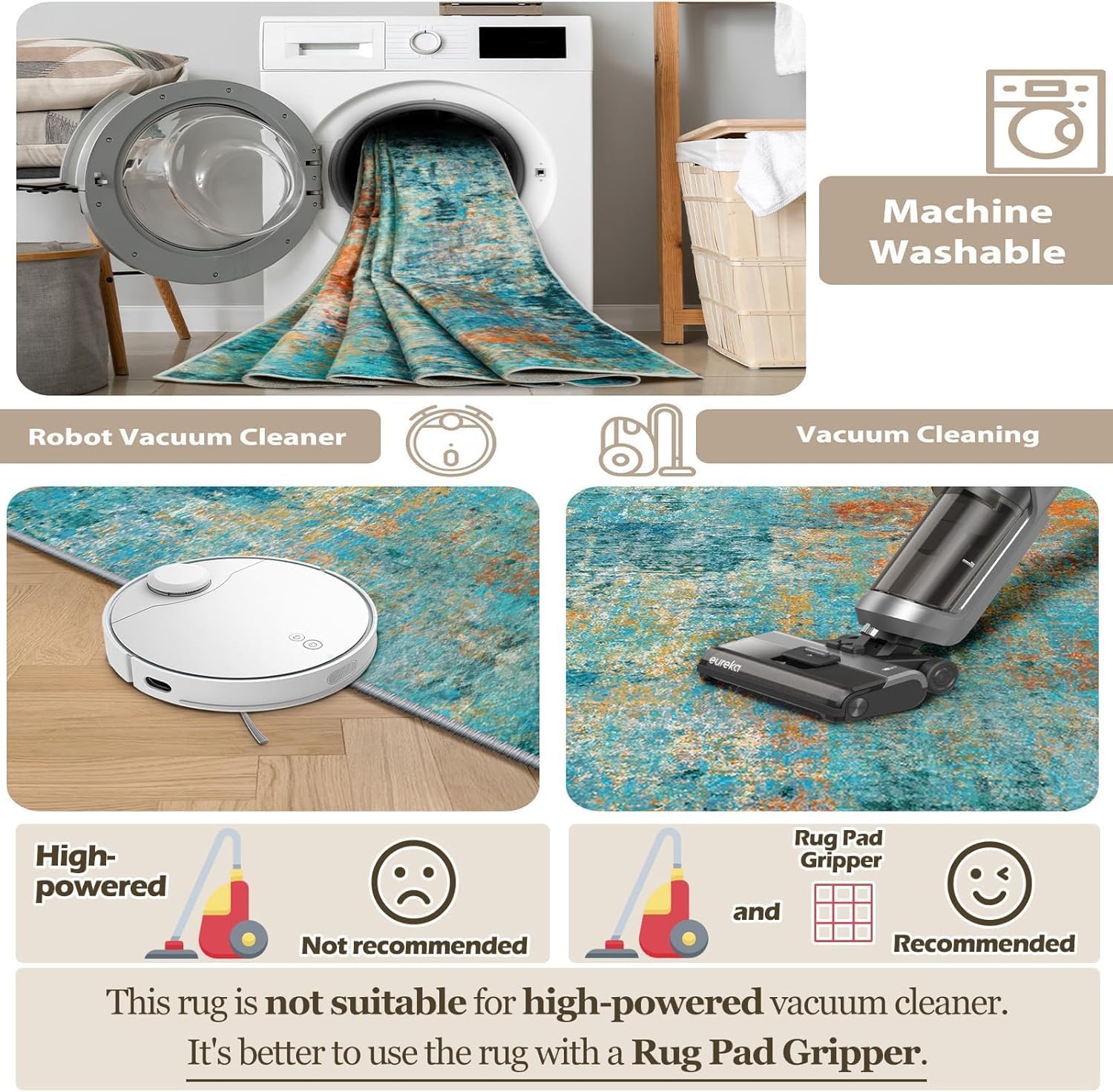 - Tides Series – Effortless style that flows with your life.This modern machine-washable non-slip rug features reinforced edges and a low-pile design that resists dirt. Its water-repellent surface makes spills easy to clean - liquids bead up for quick wiping. Simply machine wash in cold water (no bleach) to refresh. The non-slip backing keeps it securely in place. A perfect blend of function and contemporary design for active homes.