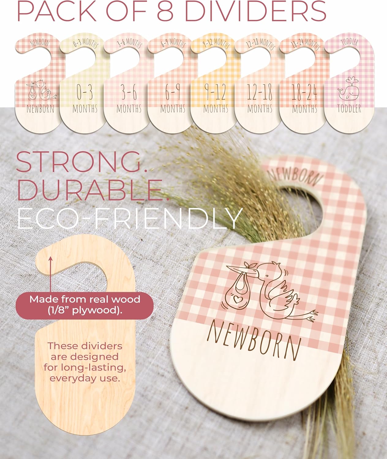 - A DELICATE TOUCH TO ANY BABY DECOR SETUP: 8 closet baby organizer variations of soft pink gingham patterns bring warmth and elegance to your nursery design. These baby closet dividers offer both style and structure, making them lovely baby nursery must-haves.