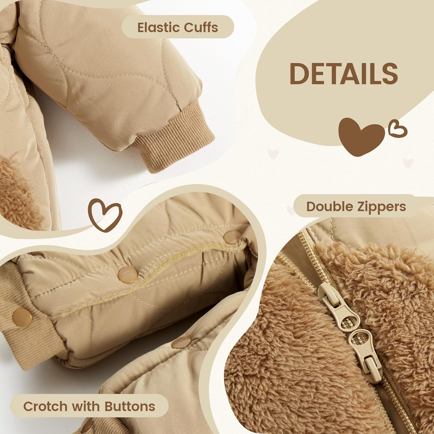 - [๐ป Adorable Winter Style]: Make your little one the cutest explorer! JiAmy baby bear outfit features a plush teddy bear hood with ears. Choose from versatile colors suitable for baby girls and boys. This charming baby winter coat design ensures warmth during snowy adventures.