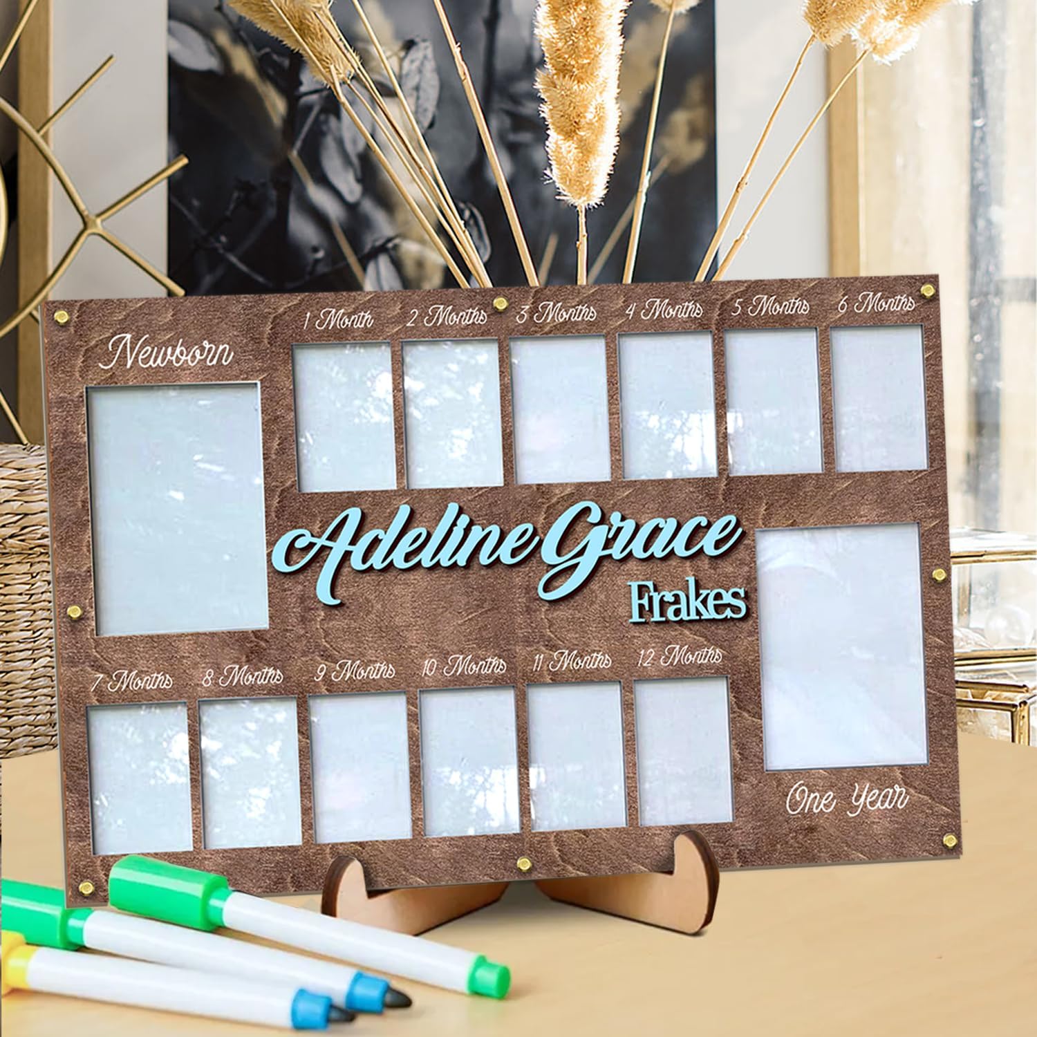 - Our my first year frame features a unique design with hook and point stickers for easy hanging and decoration. Made from high-quality, thick wood, this 12 Month Photo Frame offers lasting durability. Let your baby's photos shine in these baby milestone board, babys first year photo frame, 1-12 months baby milestone picture frame, baby first year frame and my first year picture frame, 12 months photo frame, first year baby frame and my first year picture frame 12 months.