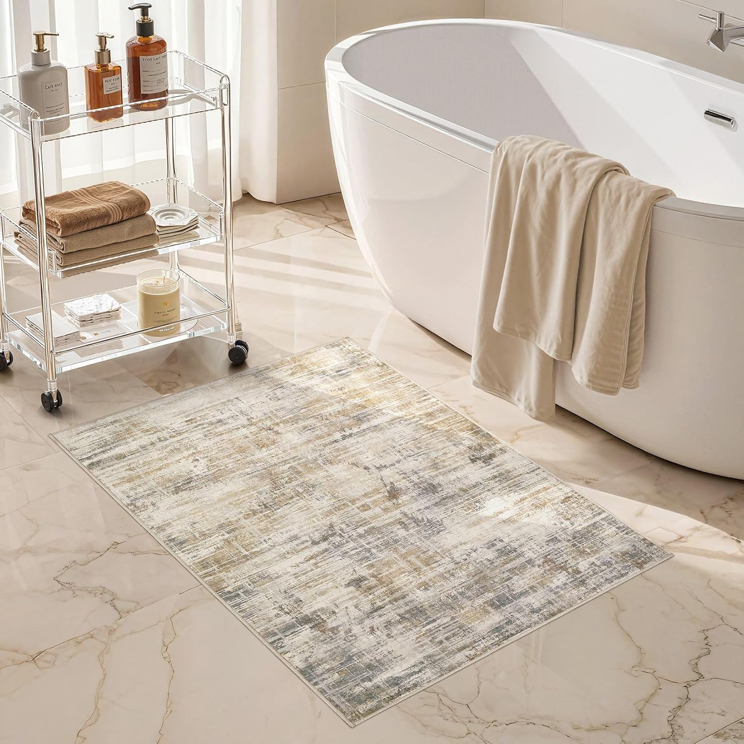 - Neutral Abstract Style: Elegant neutral design lets this rug integrate seamlessly into any space. It enhances room ambiance and adds refined elegance to your home. Perfect for living rooms, bedrooms, dining rooms, studies, offices, playrooms and nurseries