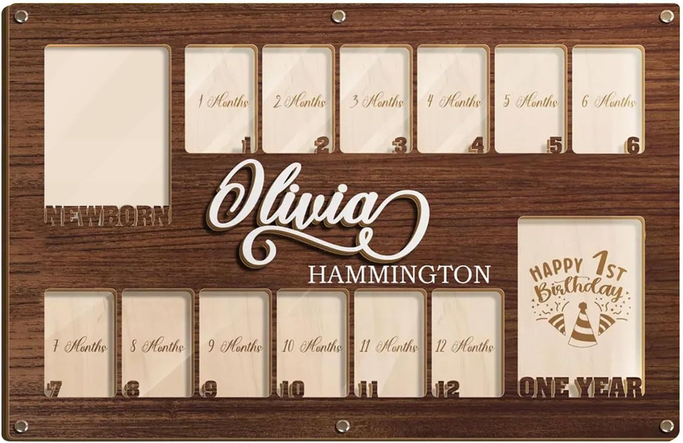 - Our my first year frame features a unique design with hook and point stickers for easy hanging and decoration. Made from high-quality, thick wood, this 12 Month Photo Frame offers lasting durability. Let your baby's photos shine in these baby milestone board, babys first year photo frame, 1-12 months baby milestone picture frame, baby first year frame and my first year picture frame, 12 months photo frame, first year baby frame and my first year picture frame 12 months.