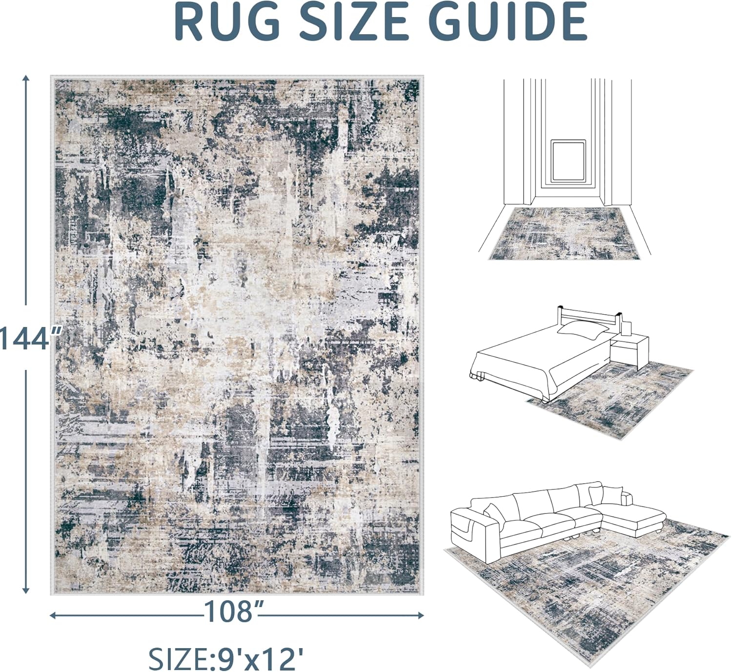 - Modern Abstract Rug: Simple color with soft stripe design, our living room rug has a modern look with a distressed feel; And 9x12 rug perfect for living room, bedroom, dining room, kitchen, children's room, office, laundry room, dorm.