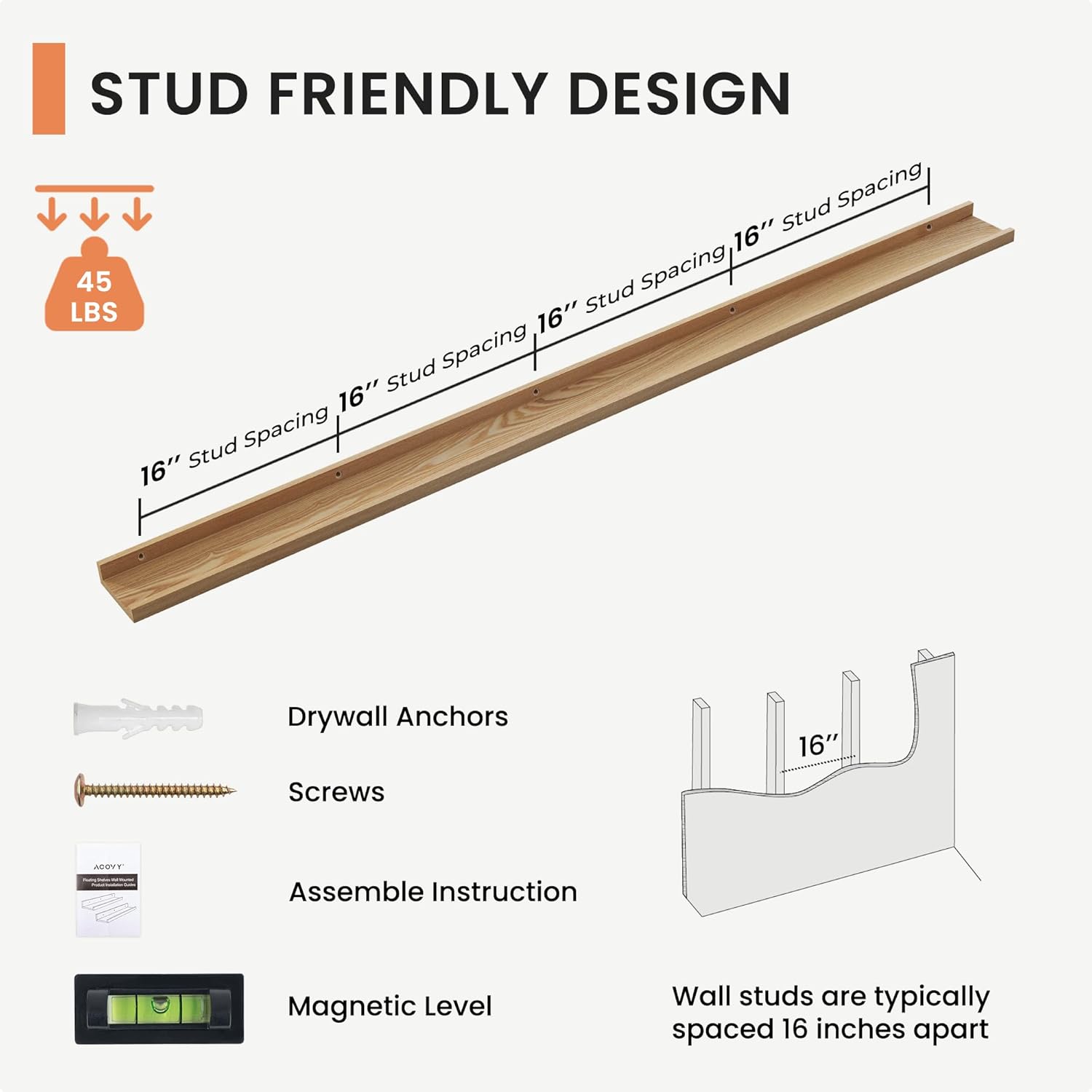 - Solid Ash Wood Picture Ledge Shelf : Crafted from high-quality solid ash wood, these picture ledge shelves are durable and uniquely beautiful, with each one showcasing its own wood grain pattern. Perfect for any decor style, they add a touch of elegance while displaying your cherished memories