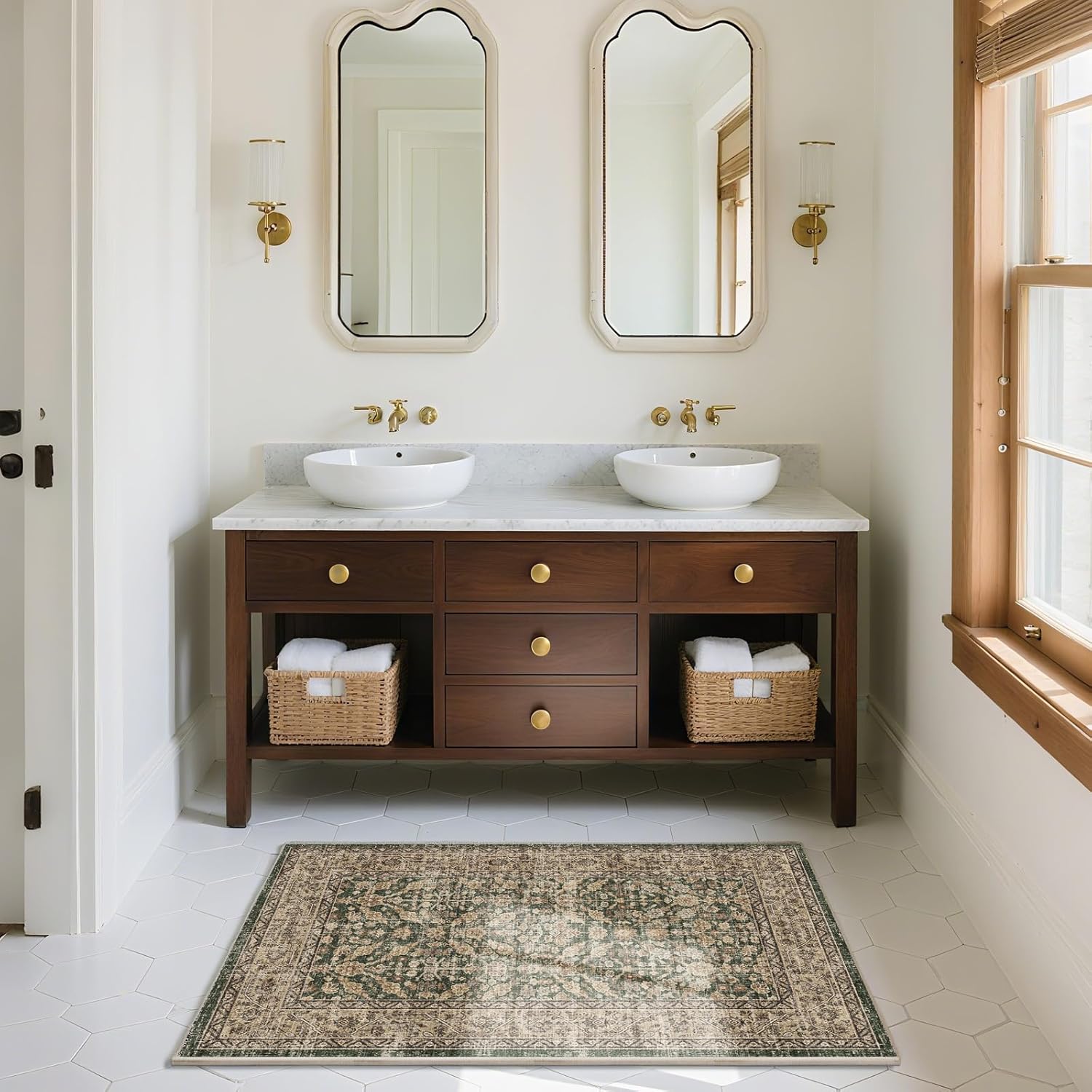 Boho Washable Kitcheh Rug for Entryway: Door Mat Indoor Entrance 2x3 Small Throw Rug Stain Resistant Non-Slip Low Pile Soft Carpet for Kitchen Front Door Indoor Entrance Entry Bedroom